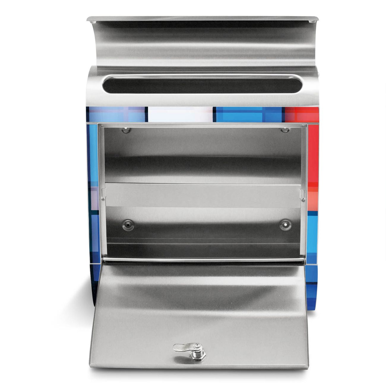 Der Motivstandbriefkasten hat ein sehr ansprechendes und ausgefallenes Design, damit entlocken Sie Ihren Nachbarn und dem Postboten ein Lächeln. Heben Sie Sich ab von der tristen grauen Masse, ohne auf Funktionalität zu verzichten. Der Briefkasten besteht aus hochwertigem 18/0 Edelstahl und die Wetter- und UV-resistenten Folie mit Gläserne Stadt Motiv ist zusätzlich mit einem Schutzlaminat überzogen. Der Standbriefkasten wird mit Montagematerial und zwei Schlüsseln geliefert.