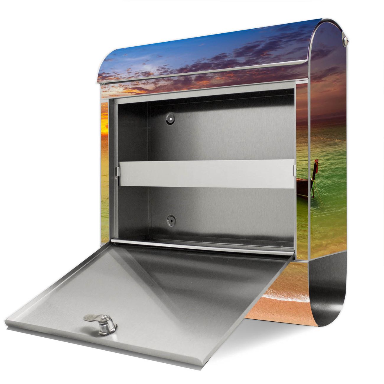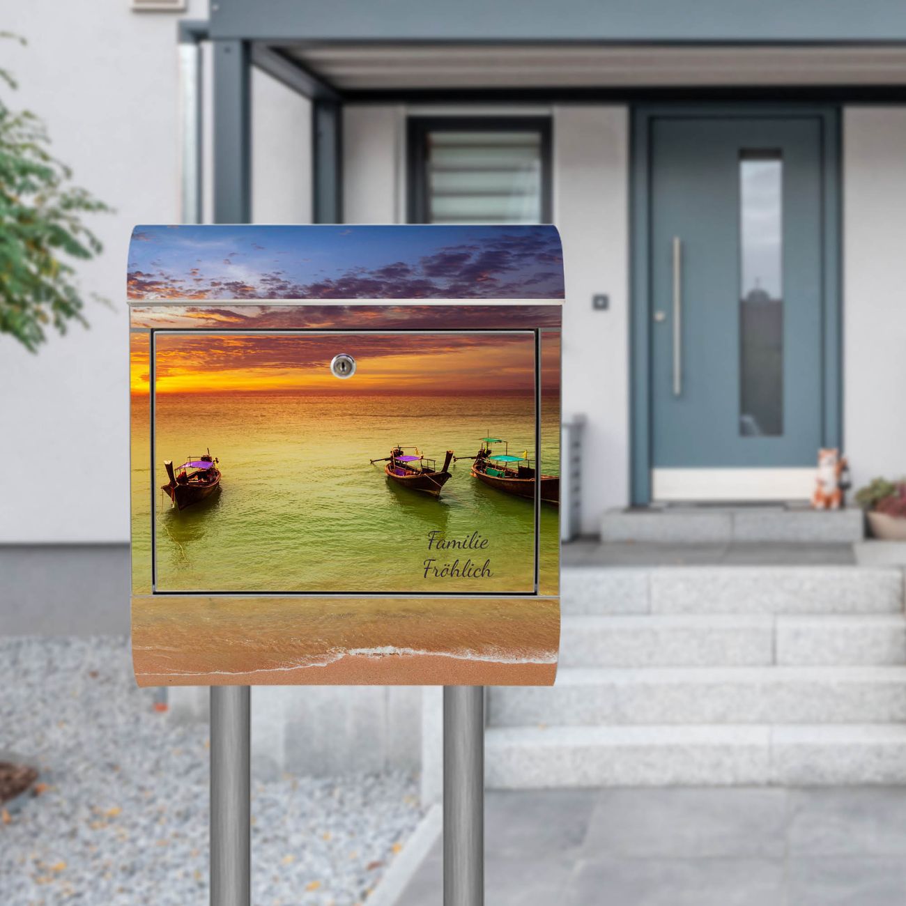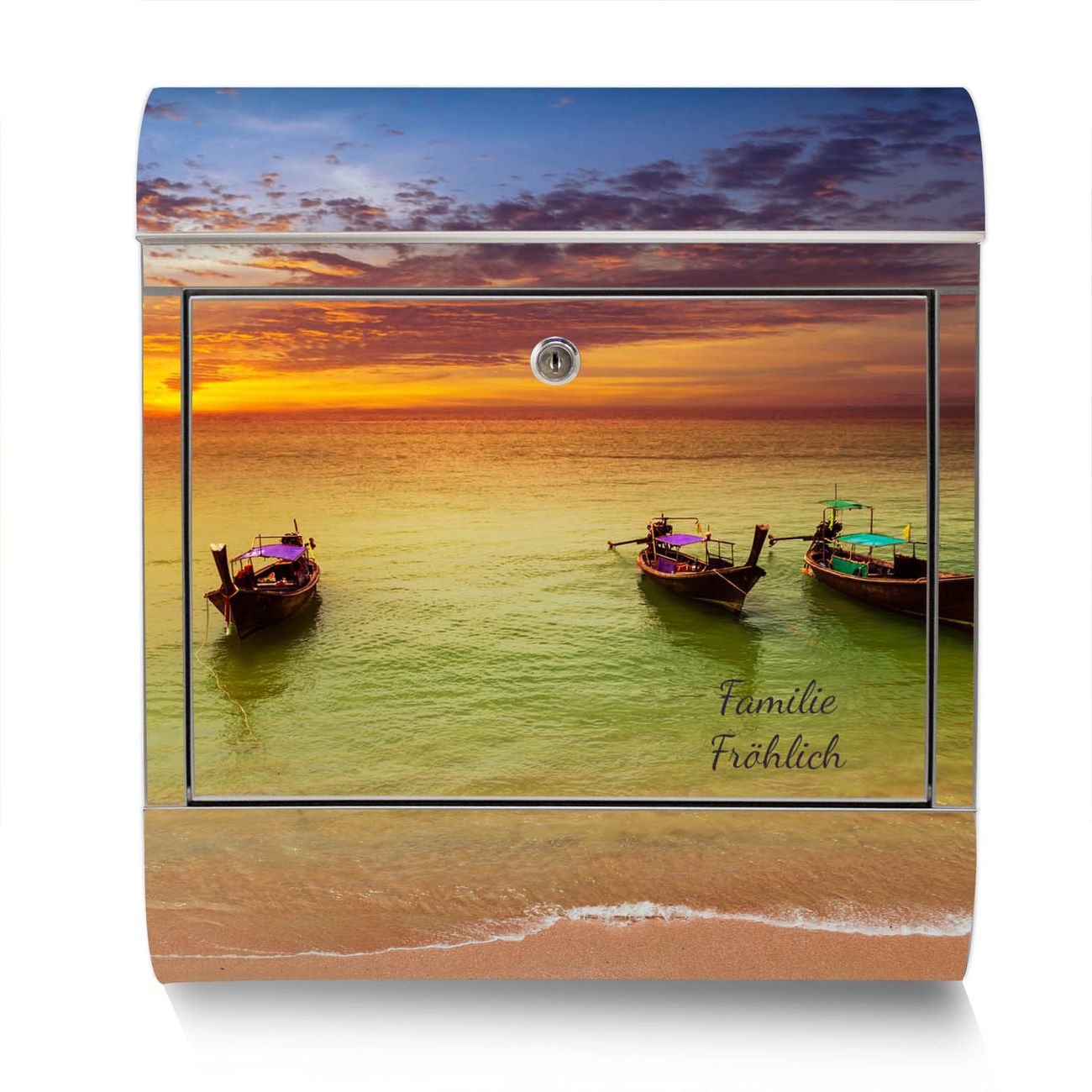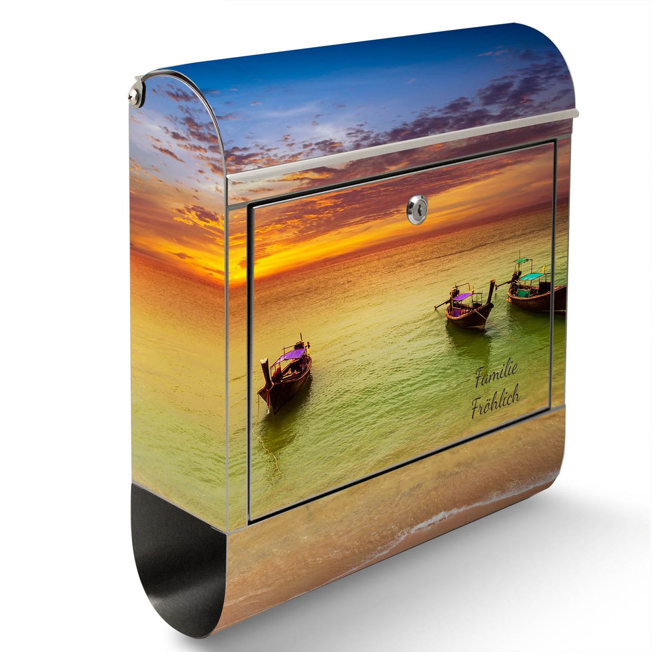 Der Motivstandbriefkasten hat ein sehr ansprechendes und ausgefallenes Design, damit entlocken Sie Ihren Nachbarn und dem Postboten ein Lächeln. Heben Sie Sich ab von der tristen grauen Masse, ohne auf Funktionalität zu verzichten. Der Briefkasten besteht aus hochwertigem 18/0 Edelstahl und die Wetter- und UV-resistenten Folie mit Golf Von Thailand Motiv ist zusätzlich mit einem Schutzlaminat überzogen. Der Standbriefkasten wird mit Montagematerial und zwei Schlüsseln geliefert.