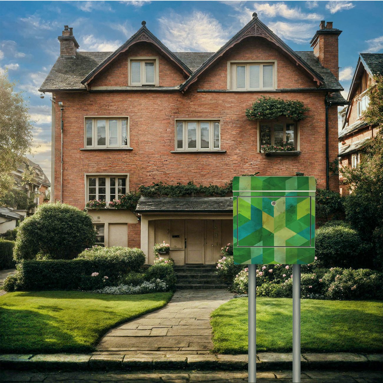 Der Motivstandbriefkasten hat ein sehr ansprechendes und ausgefallenes Design, damit entlocken Sie Ihren Nachbarn und dem Postboten ein Lächeln. Heben Sie Sich ab von der tristen grauen Masse, ohne auf Funktionalität zu verzichten. Der Briefkasten besteht aus hochwertigem 18/0 Edelstahl und die Wetter- und UV-resistenten Folie mit Grüne Würfel Motiv ist zusätzlich mit einem Schutzlaminat überzogen. Der Standbriefkasten wird mit Montagematerial und zwei Schlüsseln geliefert.