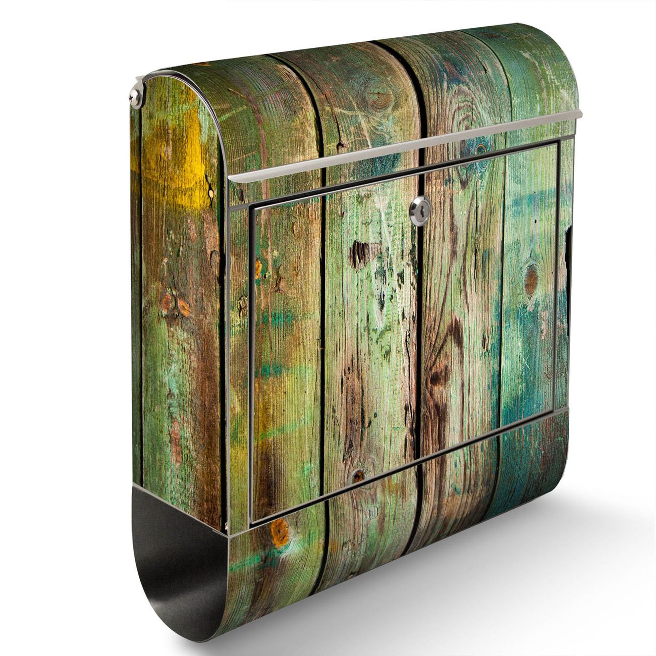 Der Motivstandbriefkasten hat ein sehr ansprechendes und ausgefallenes Design, damit entlocken Sie Ihren Nachbarn und dem Postboten ein Lächeln. Heben Sie Sich ab von der tristen grauen Masse, ohne auf Funktionalität zu verzichten. Der Briefkasten besteht aus hochwertigem 18/0 Edelstahl und die Wetter- und UV-resistenten Folie mit Grünes Holz Motiv ist zusätzlich mit einem Schutzlaminat überzogen. Der Standbriefkasten wird mit Montagematerial und zwei Schlüsseln geliefert.