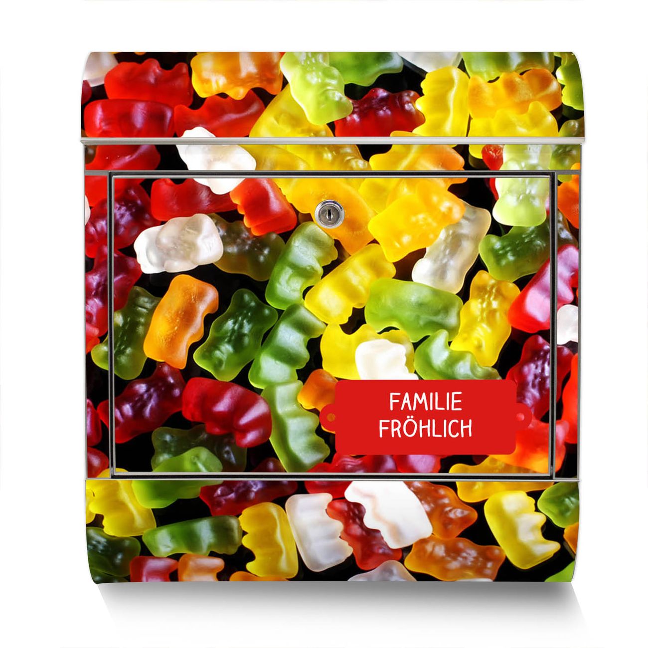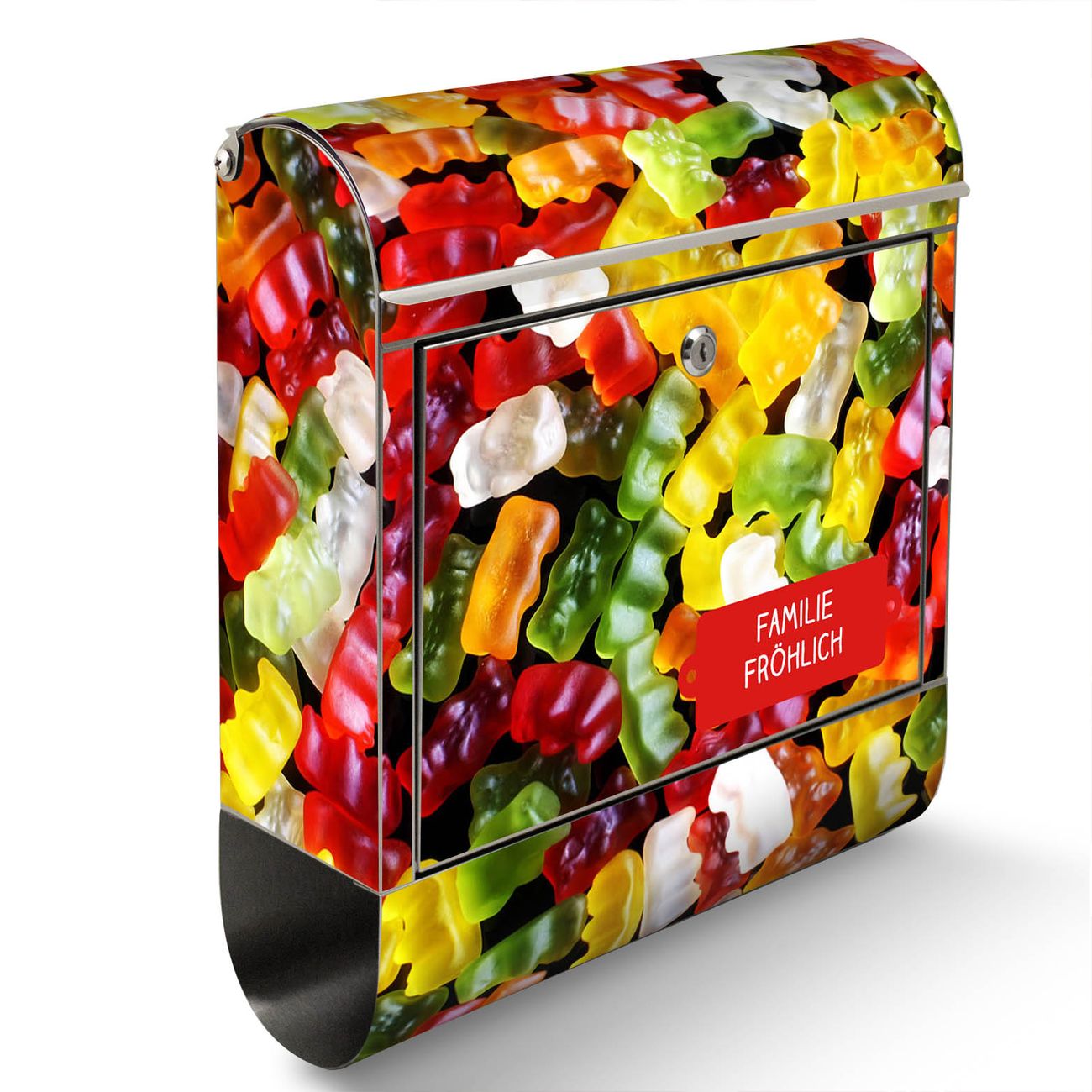 Der Motivstandbriefkasten hat ein sehr ansprechendes und ausgefallenes Design, damit entlocken Sie Ihren Nachbarn und dem Postboten ein Lächeln. Heben Sie Sich ab von der tristen grauen Masse, ohne auf Funktionalität zu verzichten. Der Briefkasten besteht aus hochwertigem 18/0 Edelstahl und die Wetter- und UV-resistenten Folie mit Gummibaerchen Motiv ist zusätzlich mit einem Schutzlaminat überzogen. Der Standbriefkasten wird mit Montagematerial und zwei Schlüsseln geliefert.