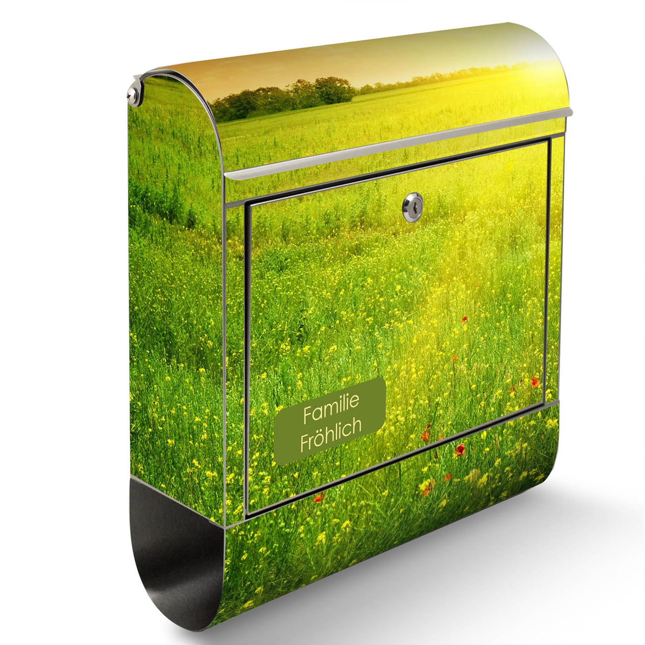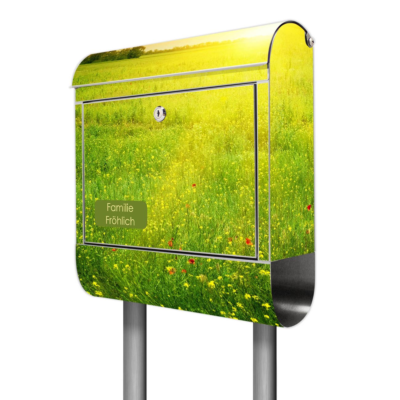 Der banjado Edelstahl Standbriefkasten mit Motiv Guten Morgen 2 und eigenem Wunschtext bietet Ihnen mit seinem Fassungsvermögen genügend Platz auch für große A4 Sendungen. Das integrierte Zeitungsfach eignet sich hervorragend, um unkompliziert die Tageszeitung zu fassen.