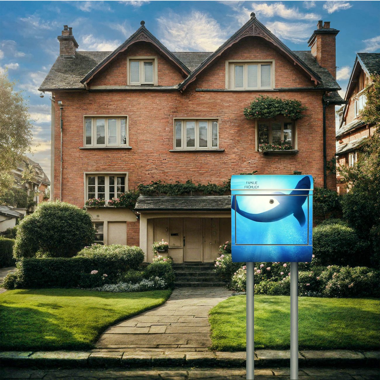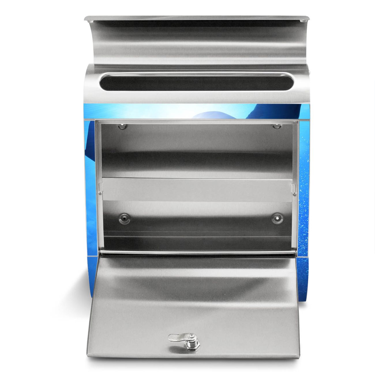 Der Motivstandbriefkasten hat ein sehr ansprechendes und ausgefallenes Design, damit entlocken Sie Ihren Nachbarn und dem Postboten ein Lächeln. Heben Sie Sich ab von der tristen grauen Masse, ohne auf Funktionalität zu verzichten. Der Briefkasten besteht aus hochwertigem 18/0 Edelstahl und die Wetter- und UV-resistenten Folie mit Hai Motiv ist zusätzlich mit einem Schutzlaminat überzogen. Der Standbriefkasten wird mit Montagematerial und zwei Schlüsseln geliefert.
