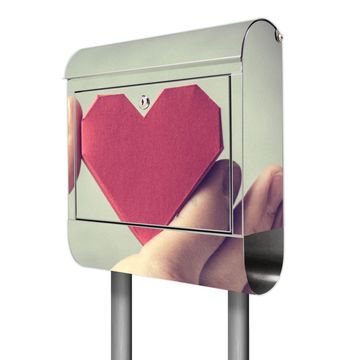 Der Motivstandbriefkasten hat ein sehr ansprechendes und ausgefallenes Design, damit entlocken Sie Ihren Nachbarn und dem Postboten ein Lächeln. Heben Sie Sich ab von der tristen grauen Masse, ohne auf Funktionalität zu verzichten. Der Briefkasten besteht aus hochwertigem 18/0 Edelstahl und die Wetter- und UV-resistenten Folie mit Hand Aufs Herz Motiv ist zusätzlich mit einem Schutzlaminat überzogen. Der Standbriefkasten wird mit Montagematerial und zwei Schlüsseln geliefert.