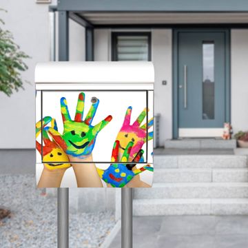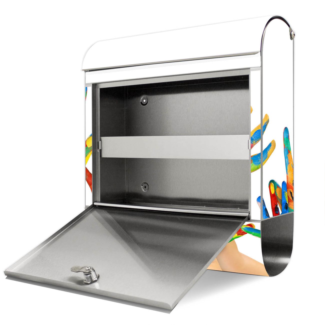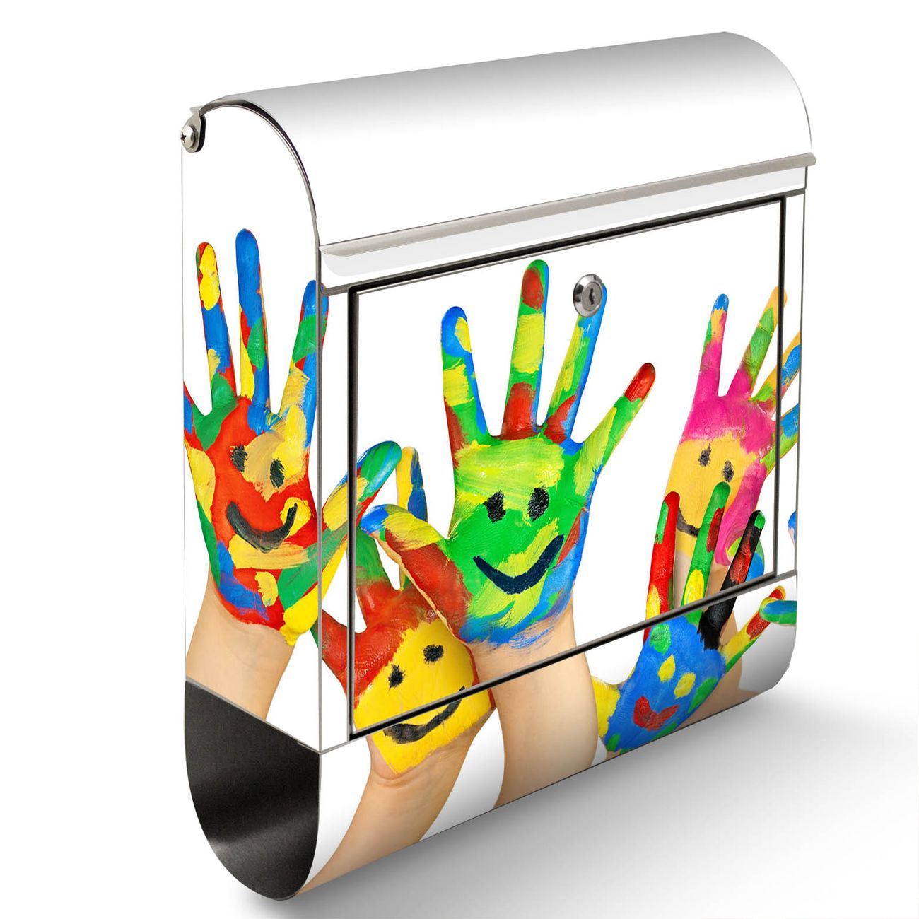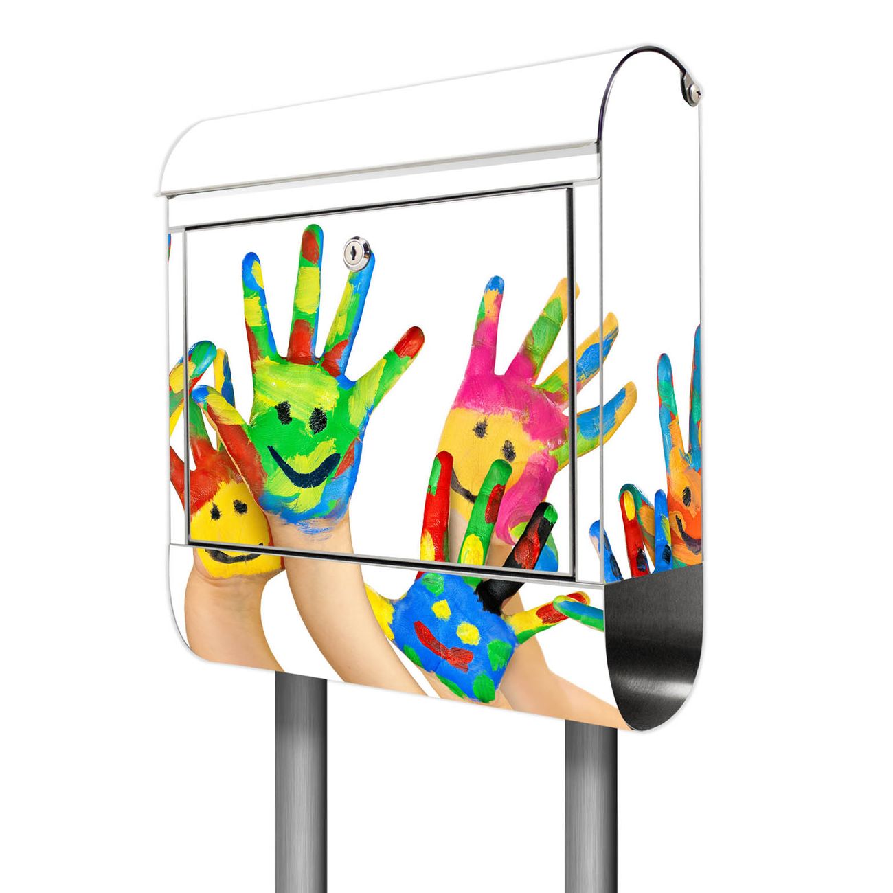 Der Motivstandbriefkasten hat ein sehr ansprechendes und ausgefallenes Design, damit entlocken Sie Ihren Nachbarn und dem Postboten ein Lächeln. Heben Sie Sich ab von der tristen grauen Masse, ohne auf Funktionalität zu verzichten. Der Briefkasten besteht aus hochwertigem 18/0 Edelstahl und die Wetter- und UV-resistenten Folie mit Happy Hands Motiv ist zusätzlich mit einem Schutzlaminat überzogen. Der Standbriefkasten wird mit Montagematerial und zwei Schlüsseln geliefert.