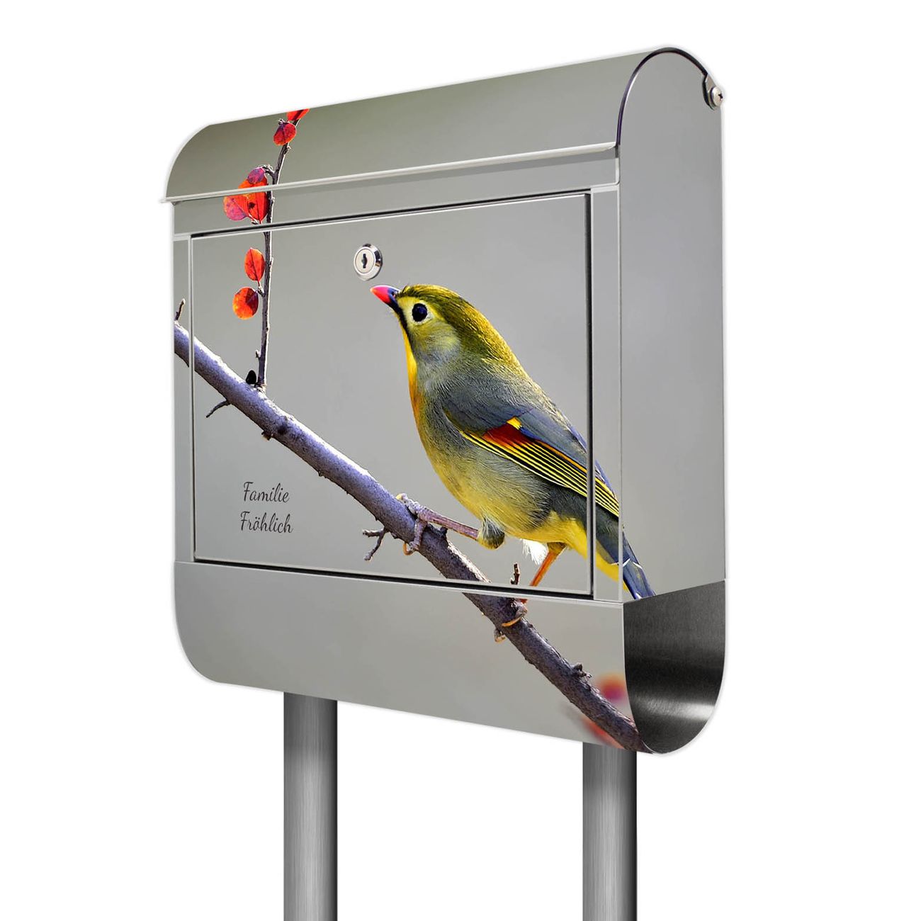 Standbriefkasten Edelstahl Herbst Vogel
