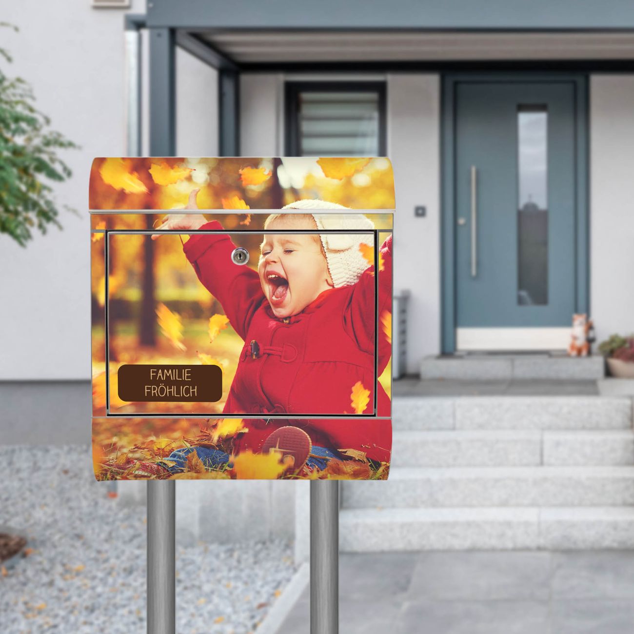 Der Motivstandbriefkasten hat ein sehr ansprechendes und ausgefallenes Design, damit entlocken Sie Ihren Nachbarn und dem Postboten ein Lächeln. Heben Sie Sich ab von der tristen grauen Masse, ohne auf Funktionalität zu verzichten. Der Briefkasten besteht aus hochwertigem 18/0 Edelstahl und die Wetter- und UV-resistenten Folie mit Herbstfreude Motiv ist zusätzlich mit einem Schutzlaminat überzogen. Der Standbriefkasten wird mit Montagematerial und zwei Schlüsseln geliefert.
