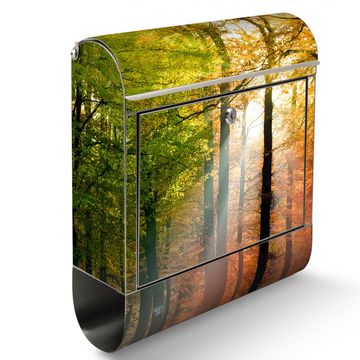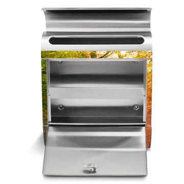 Der banjado Edelstahl Standbriefkasten mit Motiv Herbstwald bietet Ihnen mit seinem Fassungsvermögen genügend Platz auch für große A4 Sendungen. Das integrierte Zeitungsfach eignet sich hervorragend, um unkompliziert die Tageszeitung zu fassen.