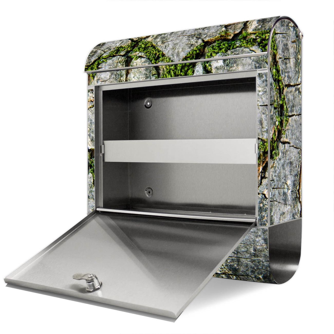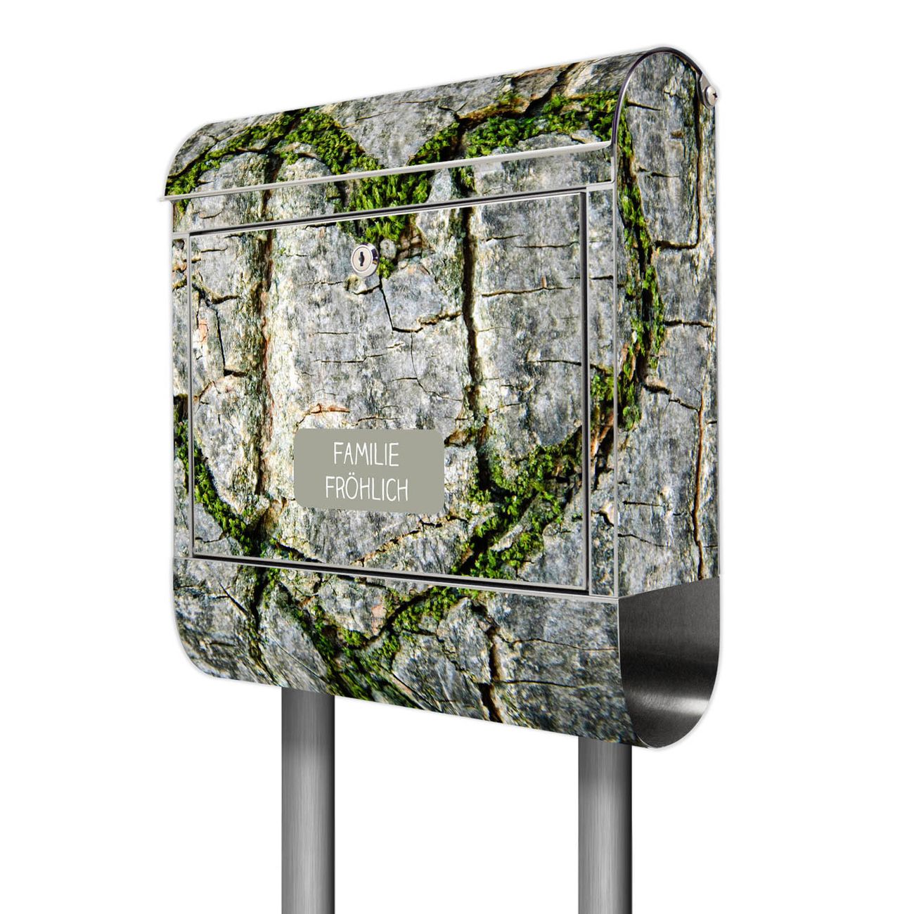 Der Motivstandbriefkasten hat ein sehr ansprechendes und ausgefallenes Design, damit entlocken Sie Ihren Nachbarn und dem Postboten ein Lächeln. Heben Sie Sich ab von der tristen grauen Masse, ohne auf Funktionalität zu verzichten. Der Briefkasten besteht aus hochwertigem 18/0 Edelstahl und die Wetter- und UV-resistenten Folie mit Herz Aus Moos Motiv ist zusätzlich mit einem Schutzlaminat überzogen. Der Standbriefkasten wird mit Montagematerial und zwei Schlüsseln geliefert.
