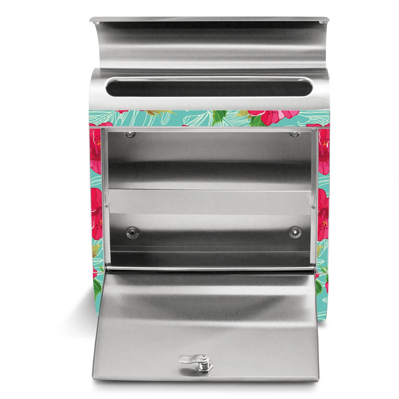 Der Motivstandbriefkasten hat ein sehr ansprechendes und ausgefallenes Design, damit entlocken Sie Ihren Nachbarn und dem Postboten ein Lächeln. Heben Sie Sich ab von der tristen grauen Masse, ohne auf Funktionalität zu verzichten. Der Briefkasten besteht aus hochwertigem 18/0 Edelstahl und die Wetter- und UV-resistenten Folie mit Hibiskus Motiv ist zusätzlich mit einem Schutzlaminat überzogen. Der Standbriefkasten wird mit Montagematerial und zwei Schlüsseln geliefert.