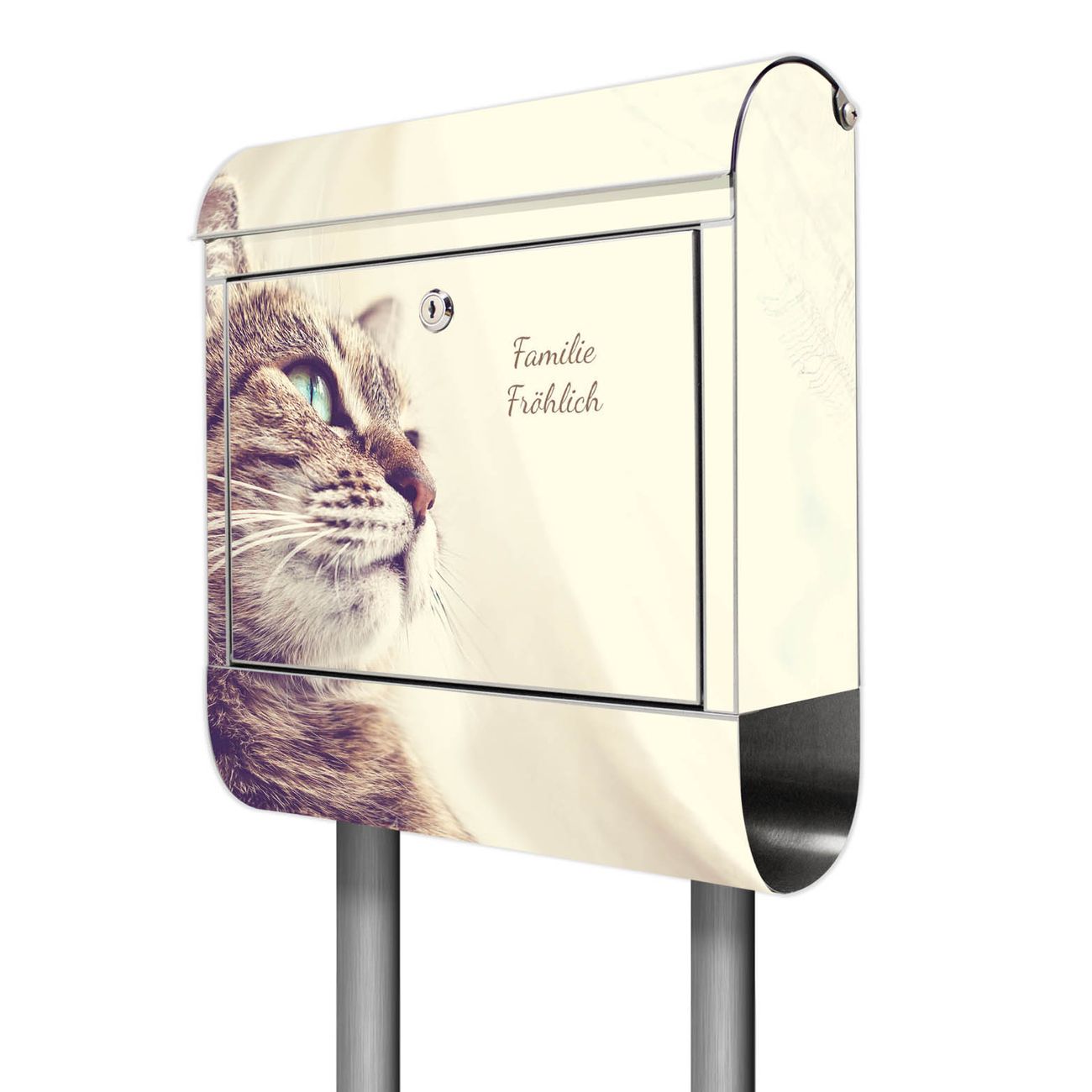 Der Motivstandbriefkasten hat ein sehr ansprechendes und ausgefallenes Design, damit entlocken Sie Ihren Nachbarn und dem Postboten ein Lächeln. Heben Sie Sich ab von der tristen grauen Masse, ohne auf Funktionalität zu verzichten. Der Briefkasten besteht aus hochwertigem 18/0 Edelstahl und die Wetter- und UV-resistenten Folie mit Holgerson Motiv ist zusätzlich mit einem Schutzlaminat überzogen. Der Standbriefkasten wird mit Montagematerial und zwei Schlüsseln geliefert.
