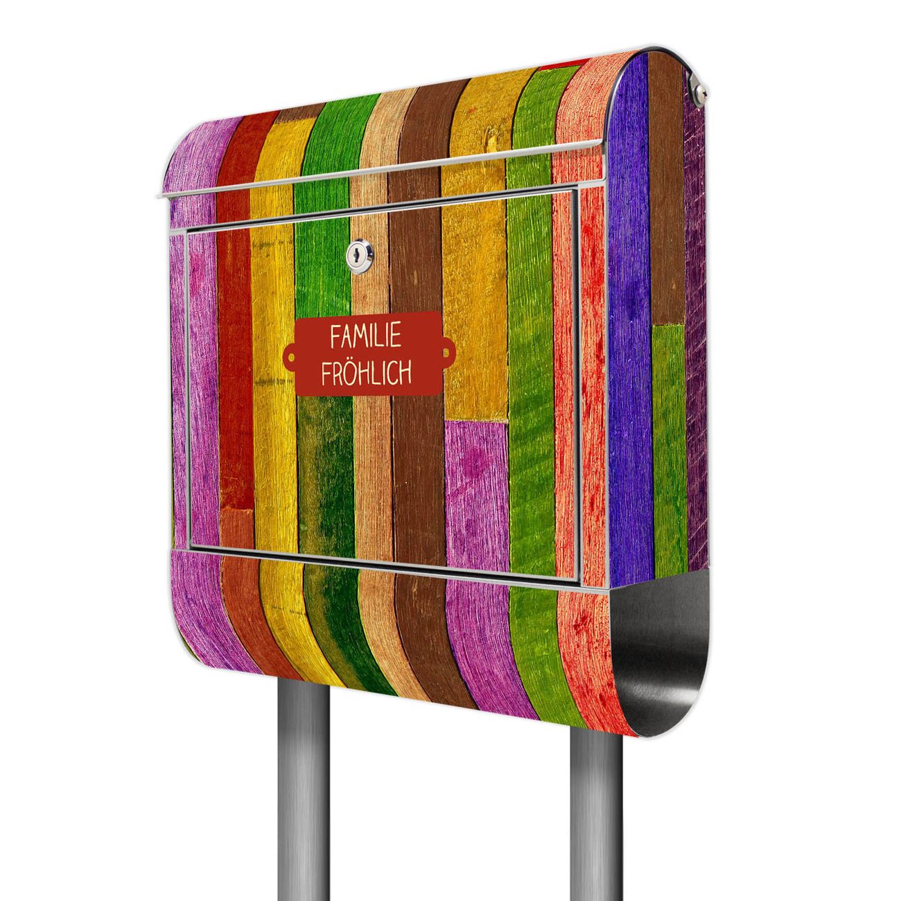 Standbriefkasten Edelstahl Holz Collage Bunt