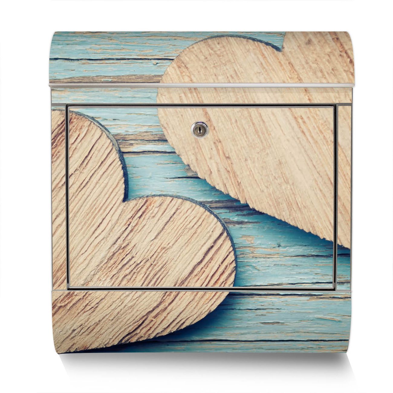 Der Motivstandbriefkasten hat ein sehr ansprechendes und ausgefallenes Design, damit entlocken Sie Ihren Nachbarn und dem Postboten ein Lächeln. Heben Sie Sich ab von der tristen grauen Masse, ohne auf Funktionalität zu verzichten. Der Briefkasten besteht aus hochwertigem 18/0 Edelstahl und die Wetter- und UV-resistenten Folie mit Holz Herzen Motiv ist zusätzlich mit einem Schutzlaminat überzogen. Der Standbriefkasten wird mit Montagematerial und zwei Schlüsseln geliefert.