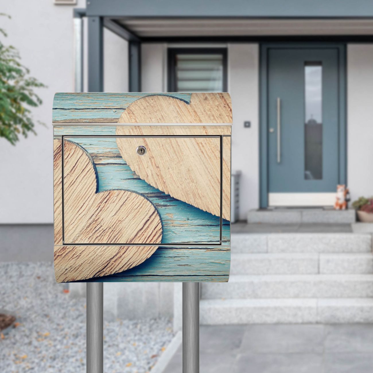 Standbriefkasten Edelstahl Holz Herzen