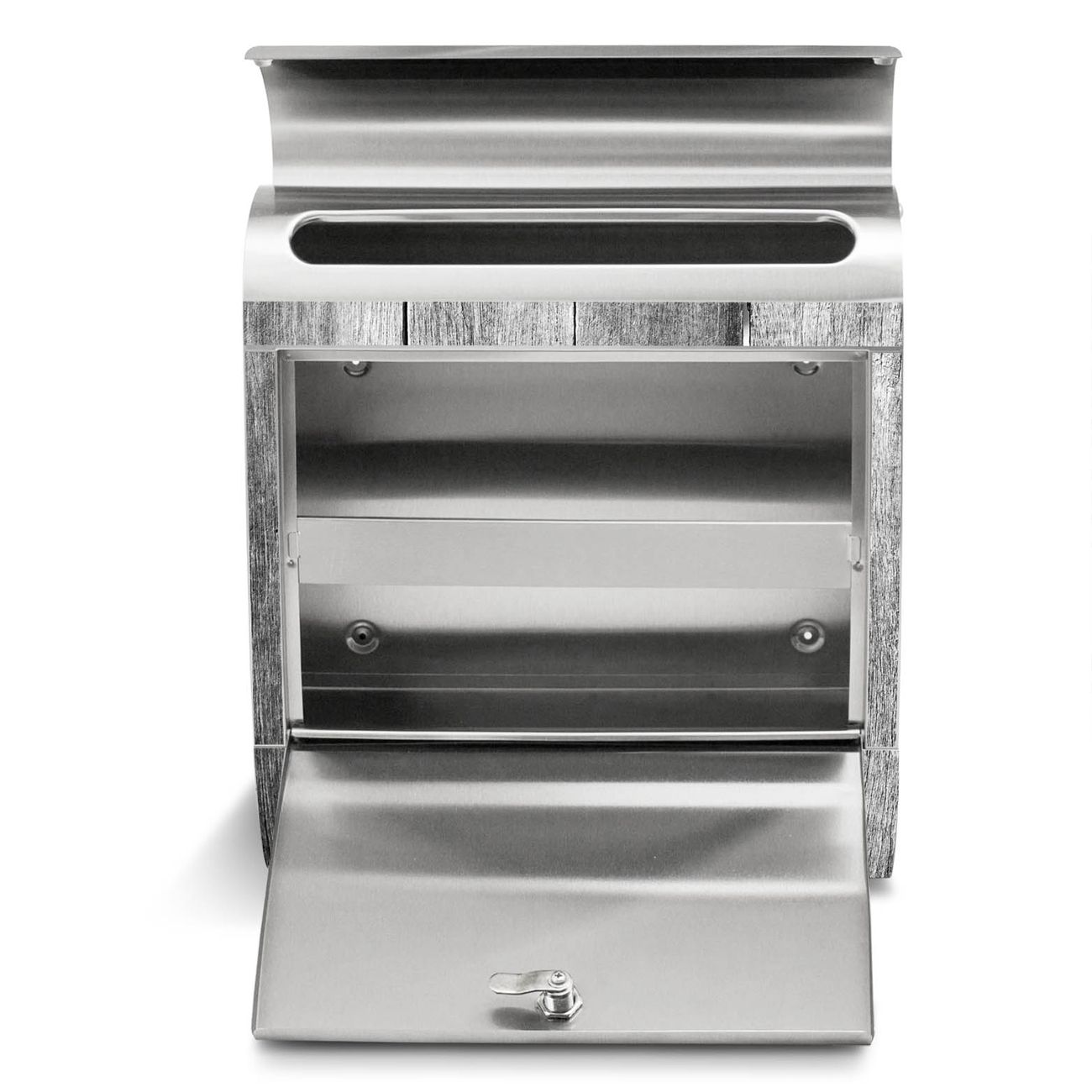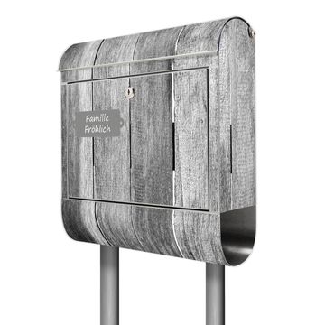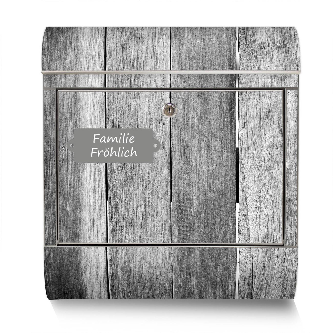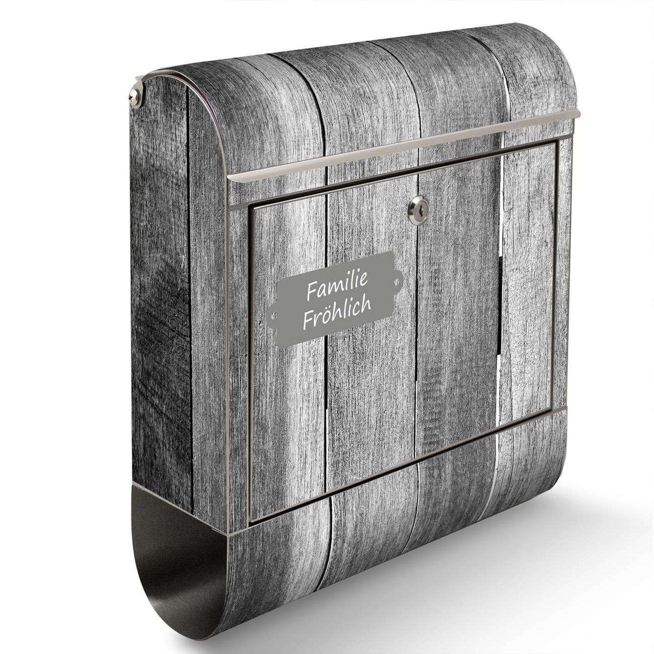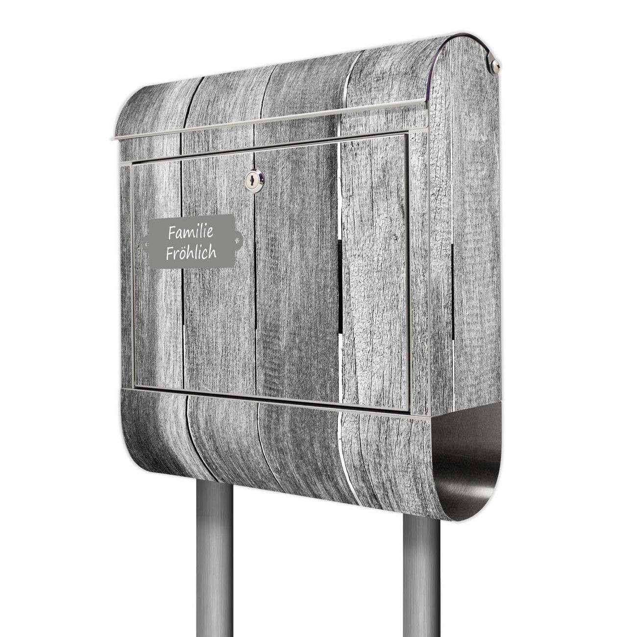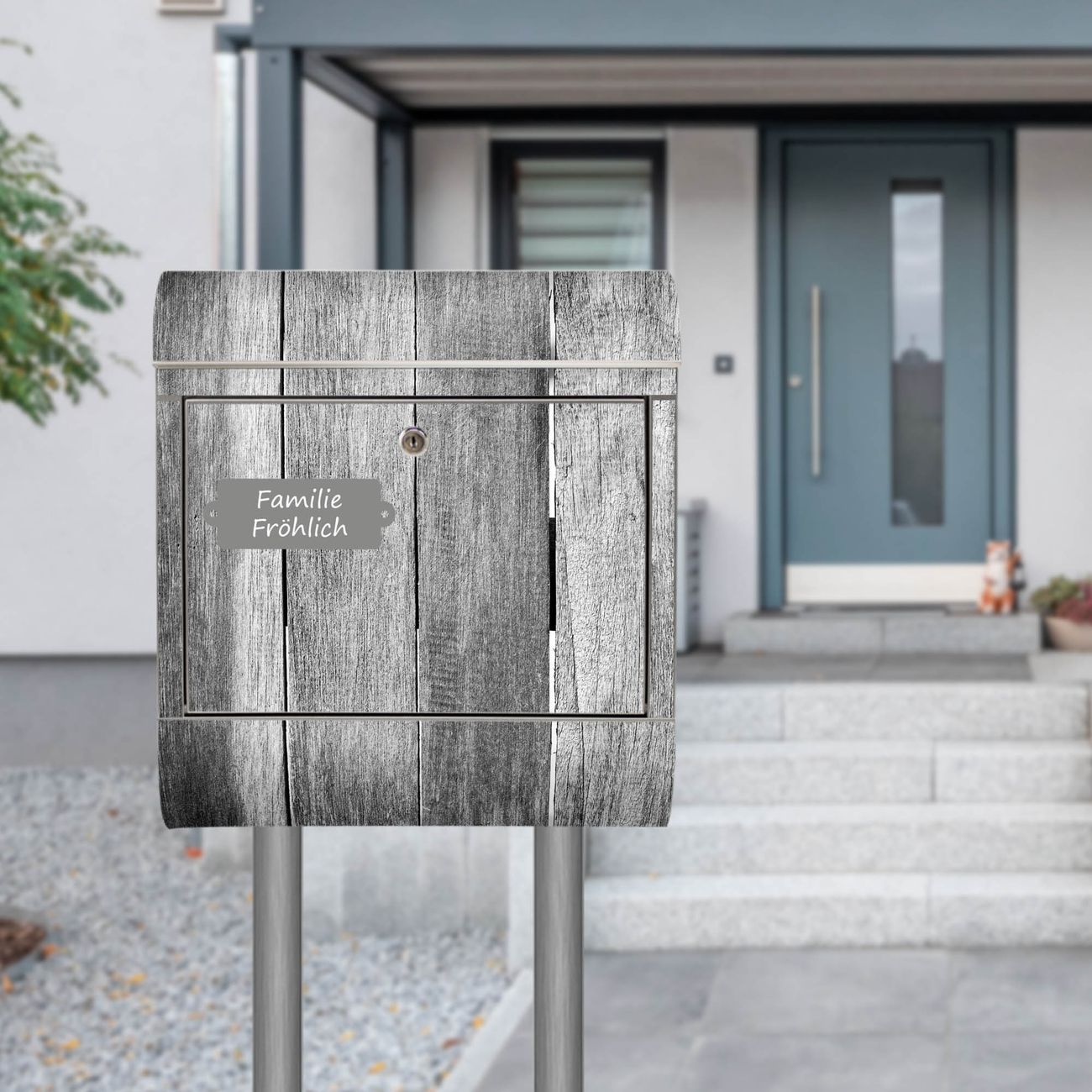 Der banjado Edelstahl Standbriefkasten mit Motiv Holz Monochrom und eigenem Wunschtext bietet Ihnen mit seinem Fassungsvermögen genügend Platz auch für große A4 Sendungen. Das integrierte Zeitungsfach eignet sich hervorragend, um unkompliziert die Tageszeitung zu fassen.