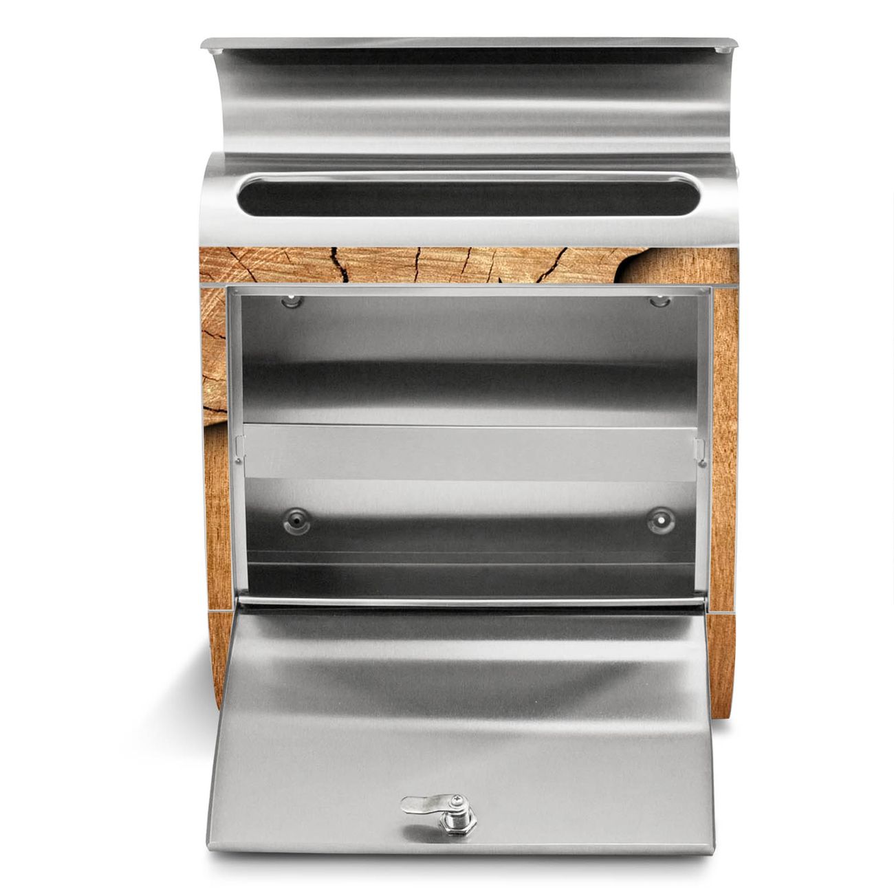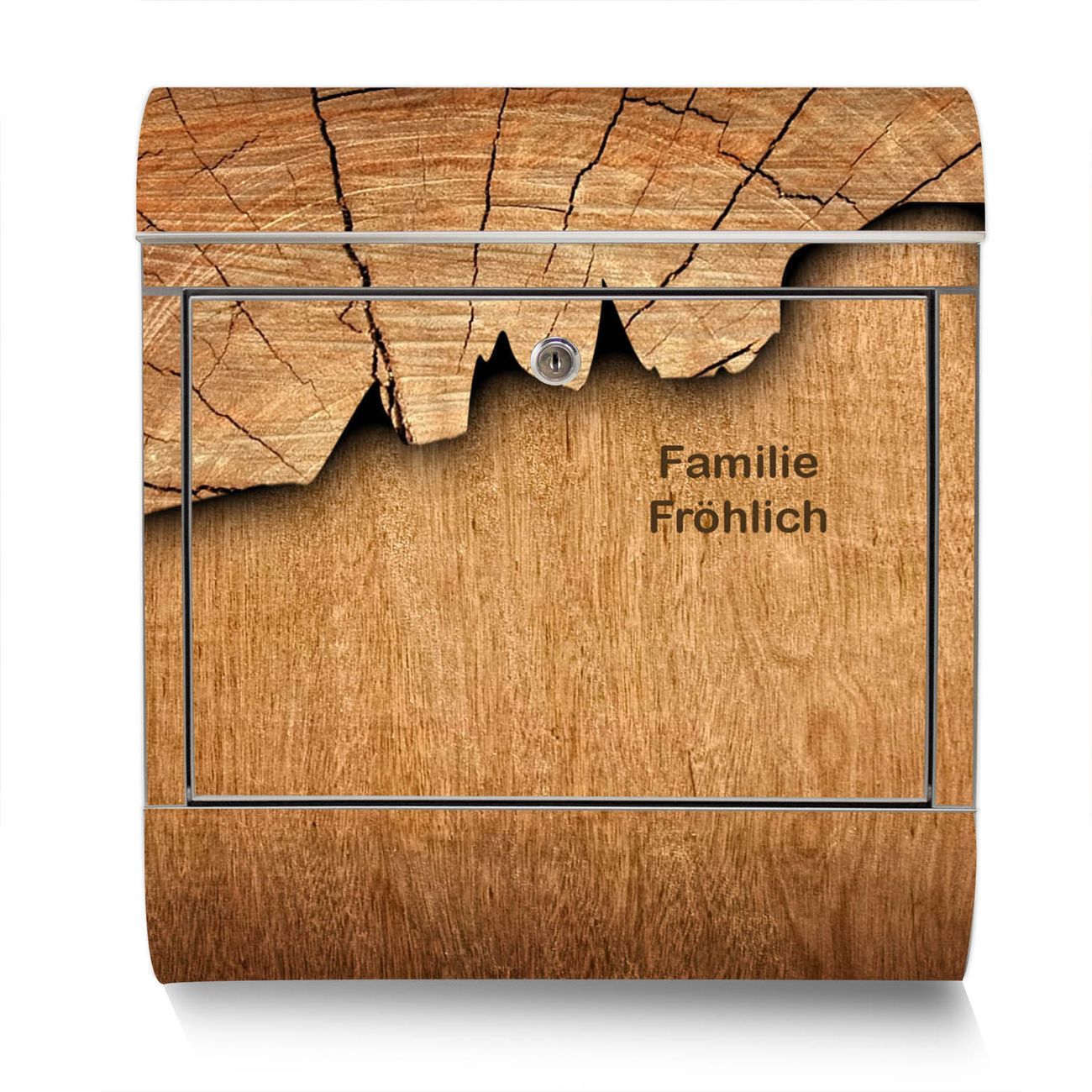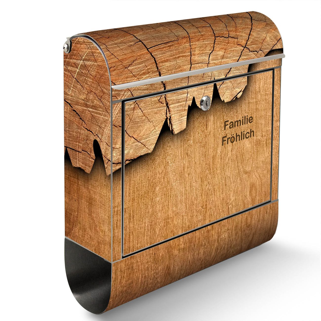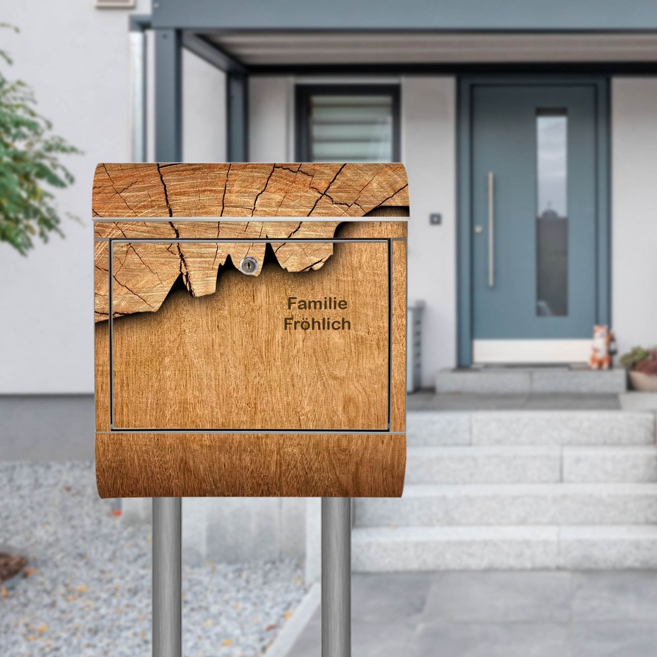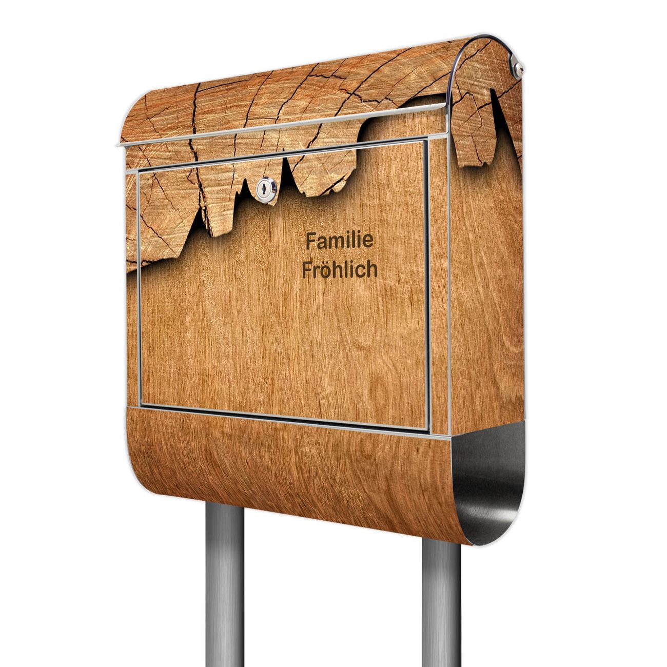 Der banjado Edelstahl Standbriefkasten mit Motiv Holz und eigenem Wunschtext bietet Ihnen mit seinem Fassungsvermögen genügend Platz auch für große A4 Sendungen. Das integrierte Zeitungsfach eignet sich hervorragend, um unkompliziert die Tageszeitung zu fassen.