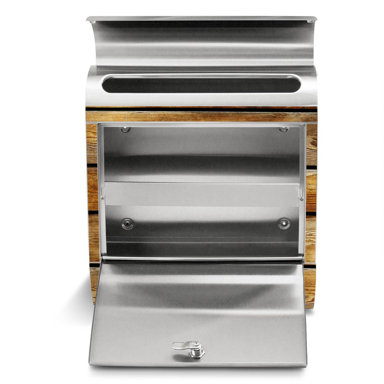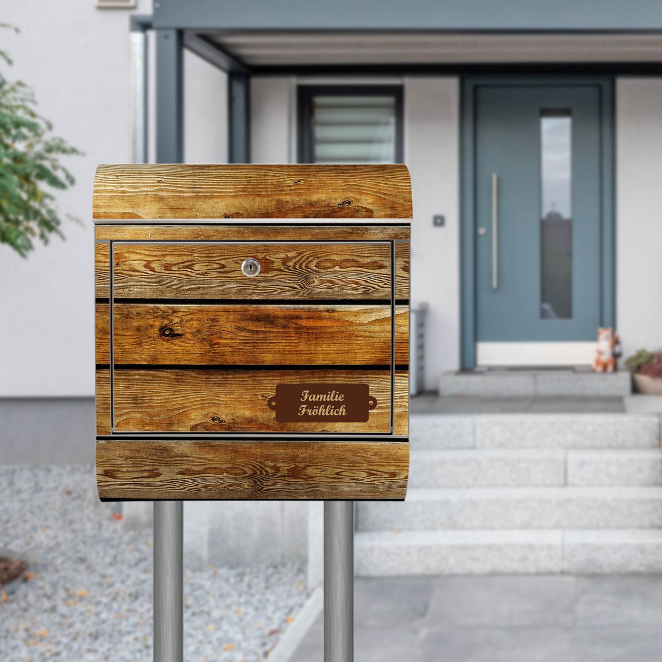 Standbriefkasten Edelstahl Holzbretter