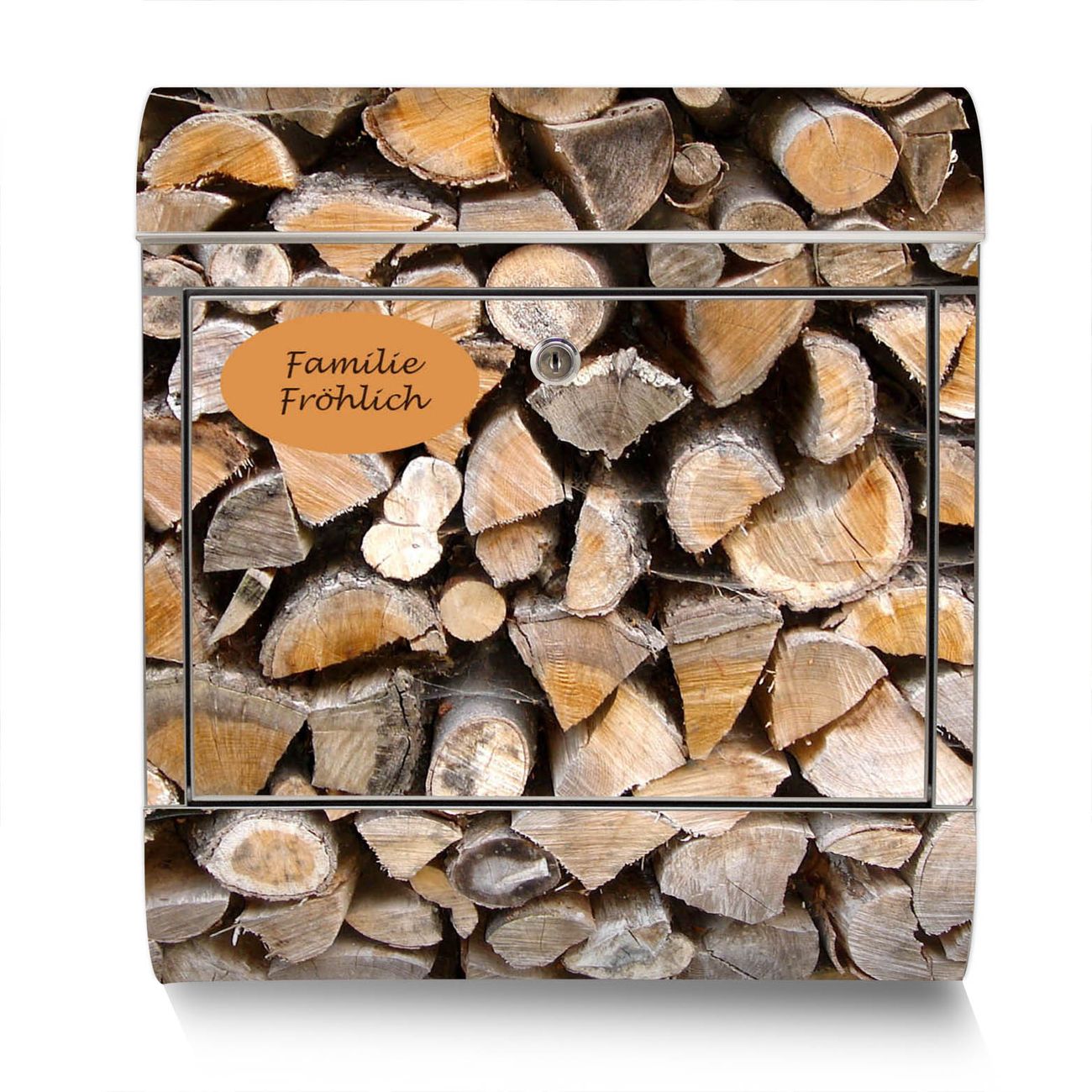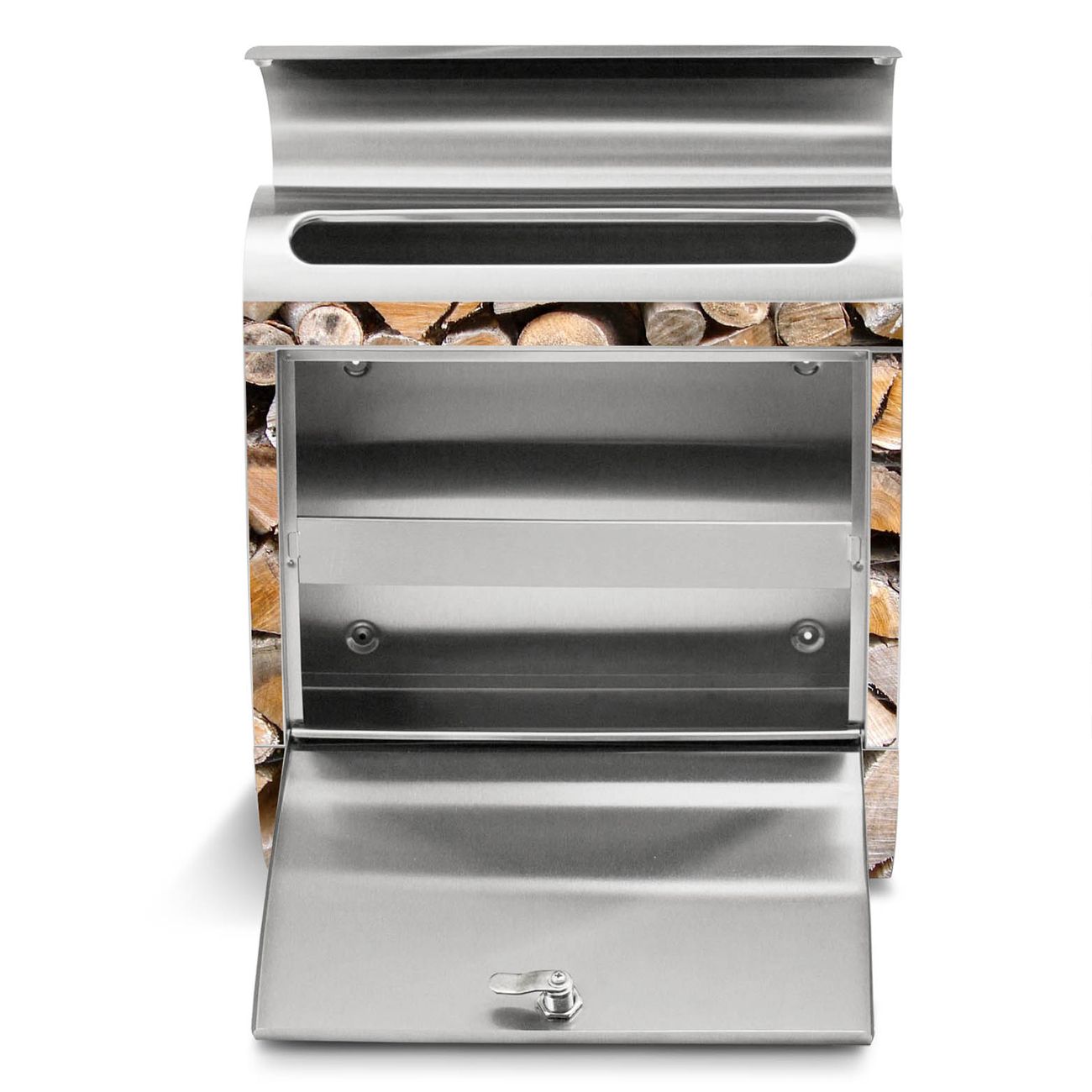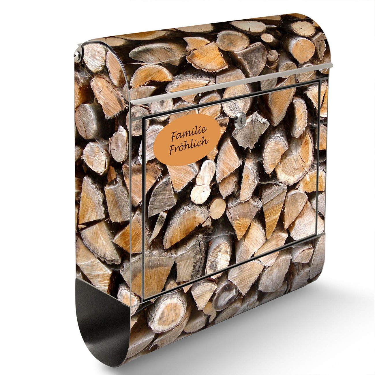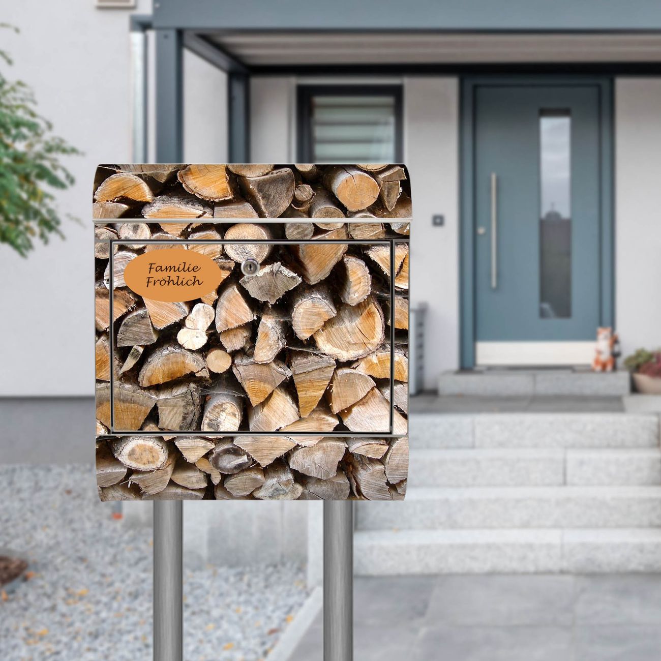 Standbriefkasten Edelstahl Holzstapel