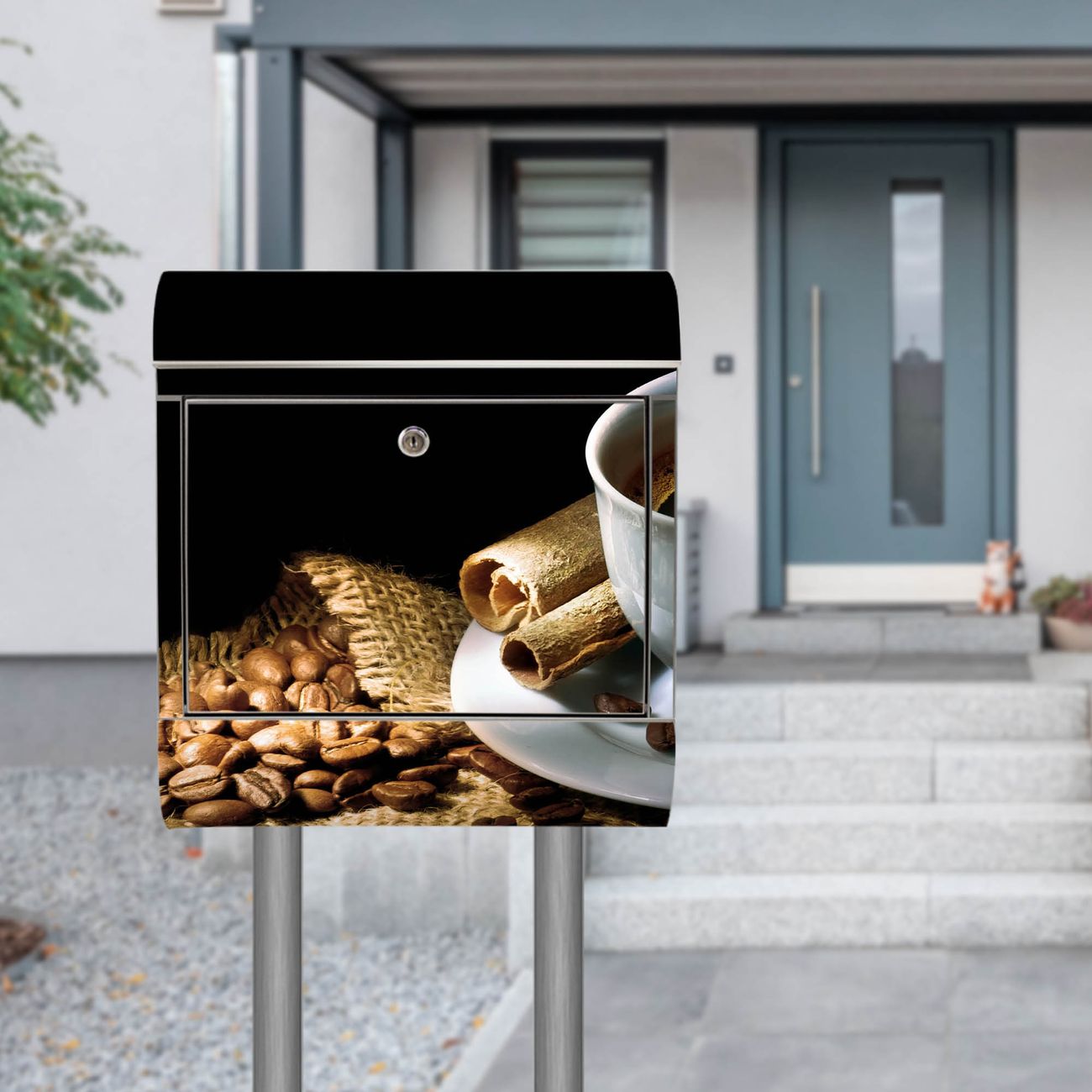 Der banjado Edelstahl Standbriefkasten mit Motiv Hot Coffee bietet Ihnen mit seinem Fassungsvermögen genügend Platz auch für große A4 Sendungen. Das integrierte Zeitungsfach eignet sich hervorragend, um unkompliziert die Tageszeitung zu fassen.