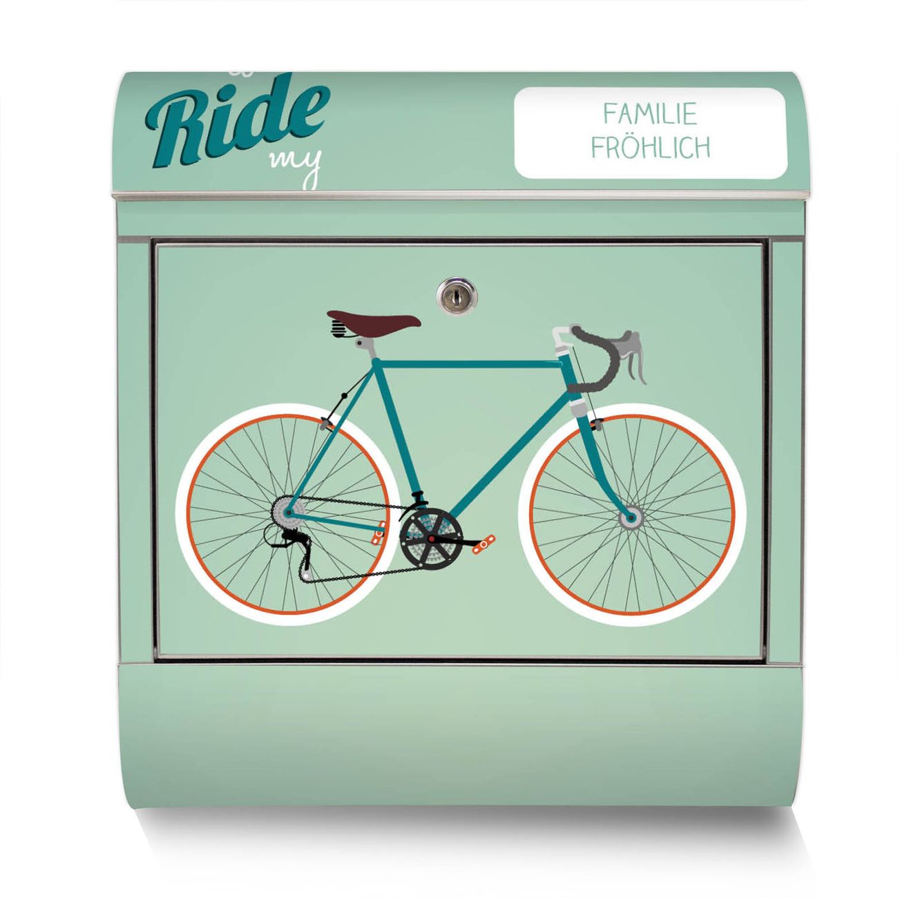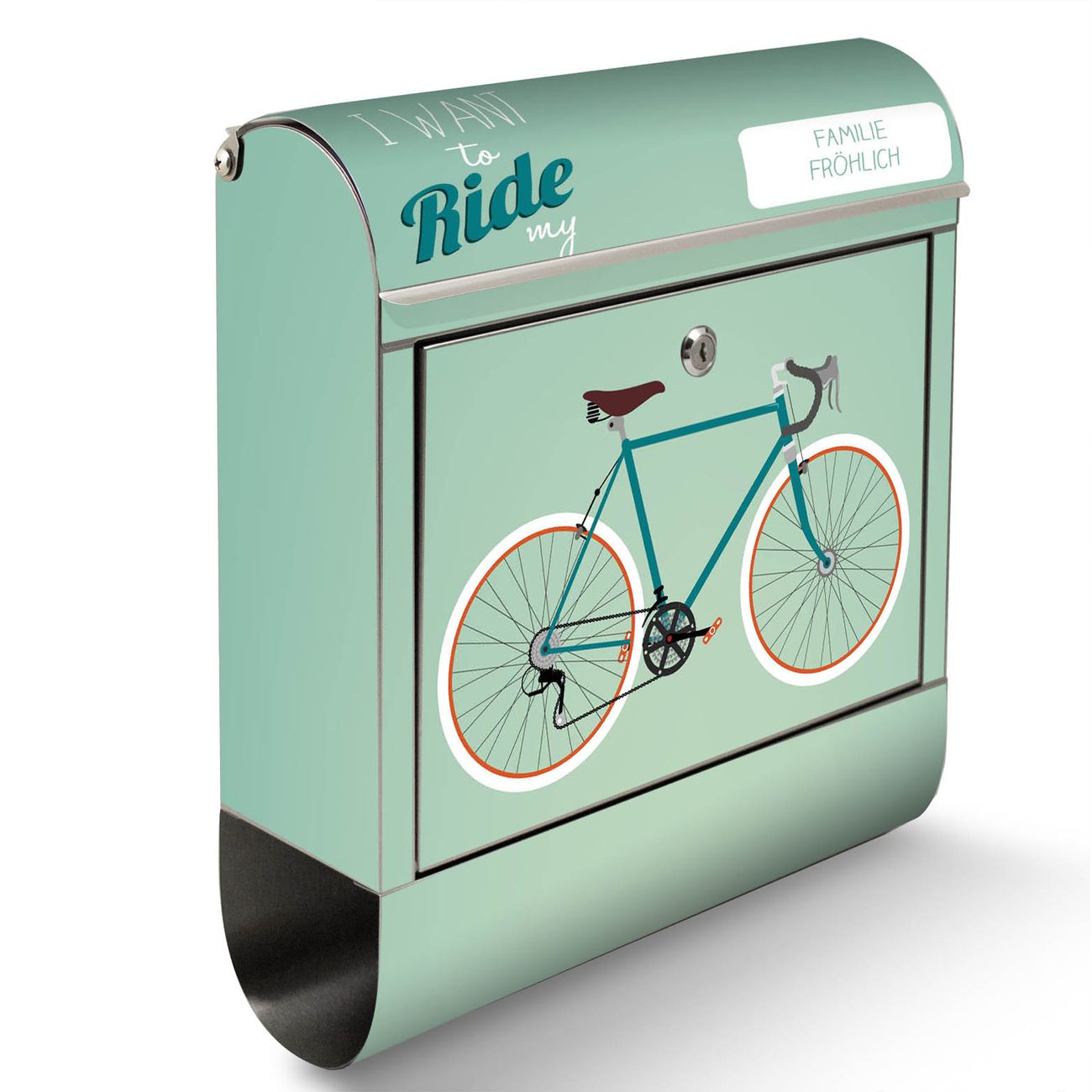 Der banjado Edelstahl Standbriefkasten mit Motiv I want to ride my bike und eigenem Wunschtext bietet Ihnen mit seinem Fassungsvermögen genügend Platz auch für große A4 Sendungen. Das integrierte Zeitungsfach eignet sich hervorragend, um unkompliziert die Tageszeitung zu fassen.