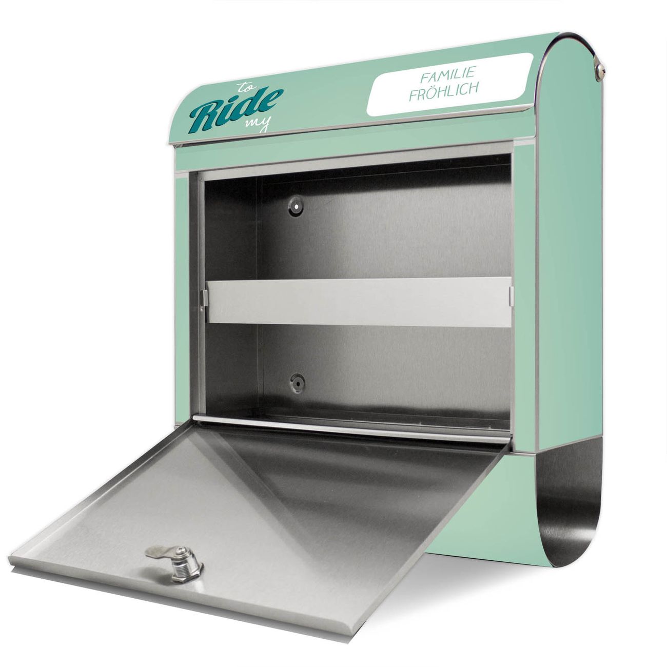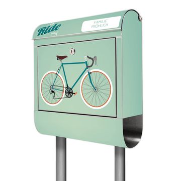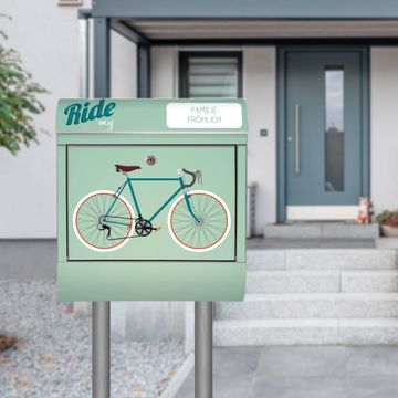 Der Motivstandbriefkasten hat ein sehr ansprechendes und ausgefallenes Design, damit entlocken Sie Ihren Nachbarn und dem Postboten ein Lächeln. Heben Sie Sich ab von der tristen grauen Masse, ohne auf Funktionalität zu verzichten. Der Briefkasten besteht aus hochwertigem 18/0 Edelstahl und die Wetter- und UV-resistenten Folie mit I want to ride my bike Motiv ist zusätzlich mit einem Schutzlaminat überzogen. Der Standbriefkasten wird mit Montagematerial und zwei Schlüsseln geliefert.