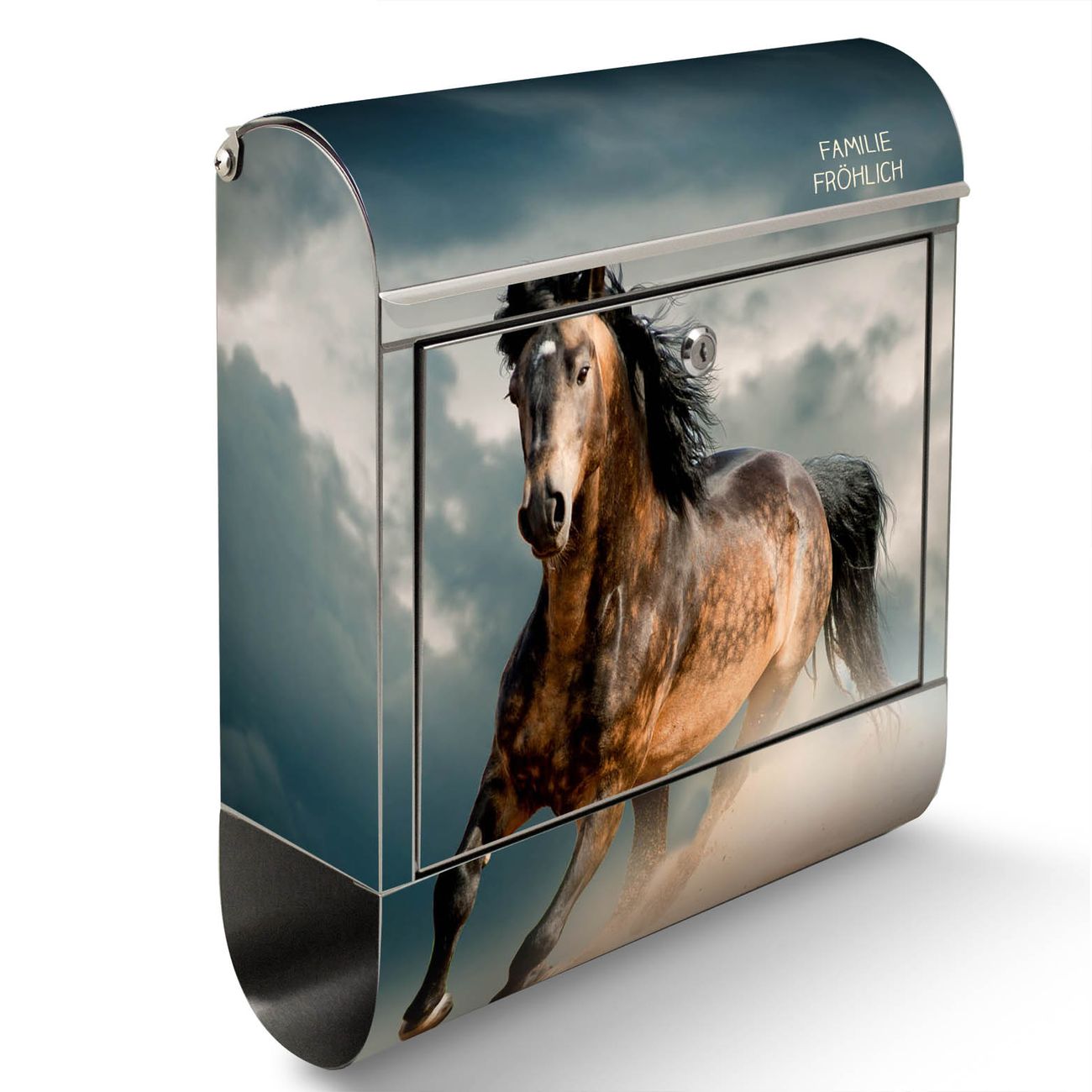 Der Motivstandbriefkasten hat ein sehr ansprechendes und ausgefallenes Design, damit entlocken Sie Ihren Nachbarn und dem Postboten ein Lächeln. Heben Sie Sich ab von der tristen grauen Masse, ohne auf Funktionalität zu verzichten. Der Briefkasten besteht aus hochwertigem 18/0 Edelstahl und die Wetter- und UV-resistenten Folie mit Ibrahim Motiv ist zusätzlich mit einem Schutzlaminat überzogen. Der Standbriefkasten wird mit Montagematerial und zwei Schlüsseln geliefert.