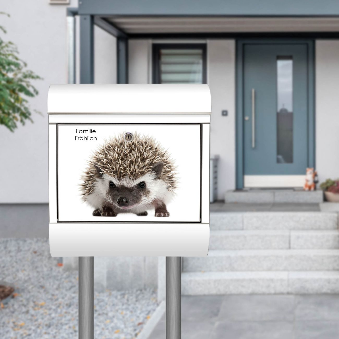 Der Motivstandbriefkasten hat ein sehr ansprechendes und ausgefallenes Design, damit entlocken Sie Ihren Nachbarn und dem Postboten ein Lächeln. Heben Sie Sich ab von der tristen grauen Masse, ohne auf Funktionalität zu verzichten. Der Briefkasten besteht aus hochwertigem 18/0 Edelstahl und die Wetter- und UV-resistenten Folie mit Igel Motiv ist zusätzlich mit einem Schutzlaminat überzogen. Der Standbriefkasten wird mit Montagematerial und zwei Schlüsseln geliefert.