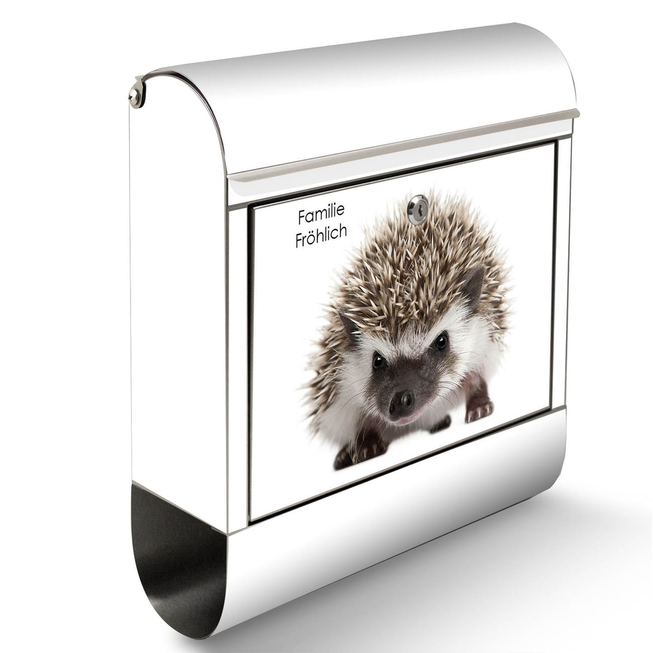 Der banjado Edelstahl Standbriefkasten mit Motiv Igel und eigenem Wunschtext bietet Ihnen mit seinem Fassungsvermögen genügend Platz auch für große A4 Sendungen. Das integrierte Zeitungsfach eignet sich hervorragend, um unkompliziert die Tageszeitung zu fassen.