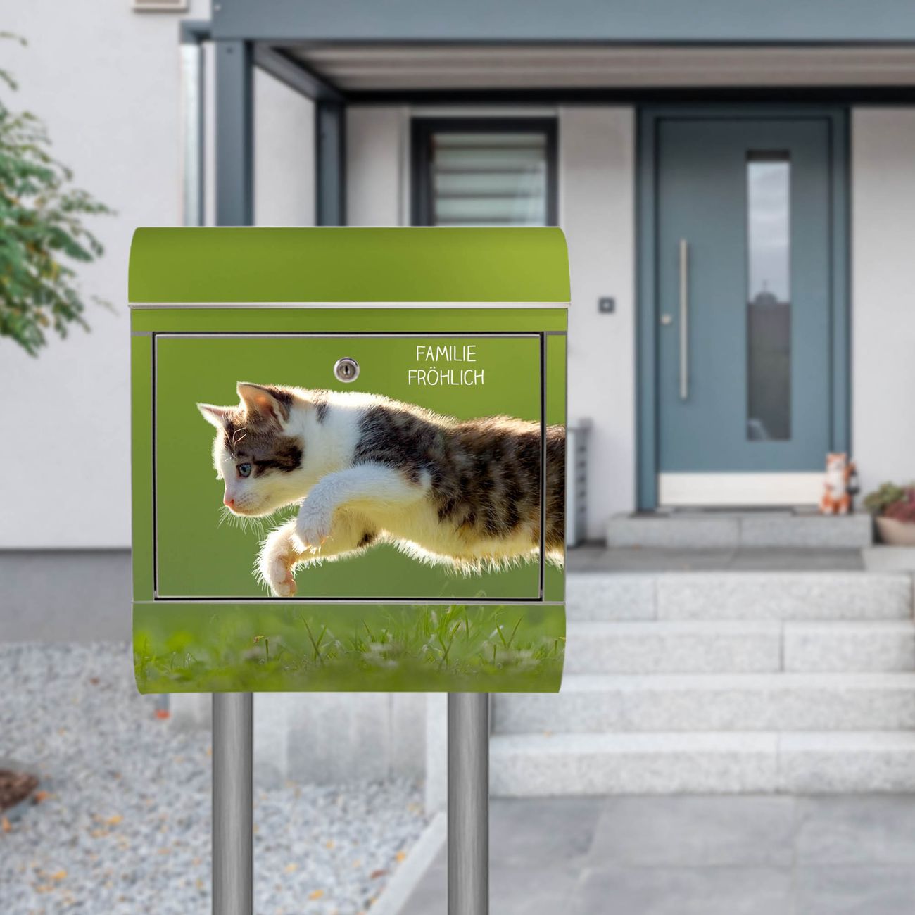Standbriefkasten Edelstahl Jagende Katze