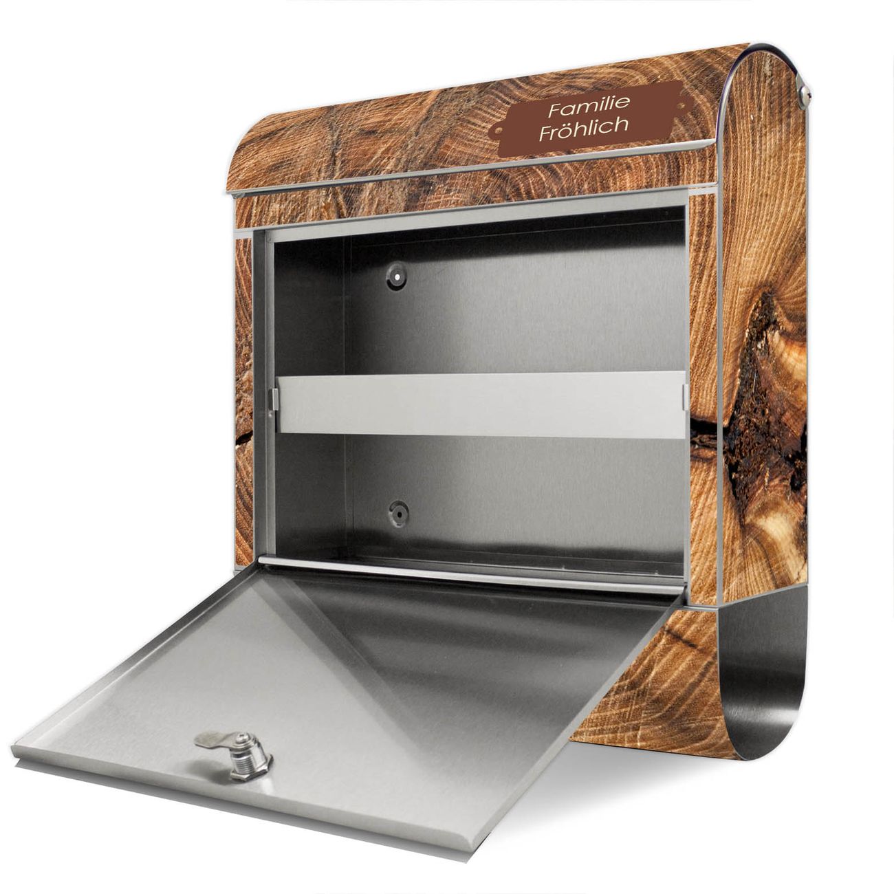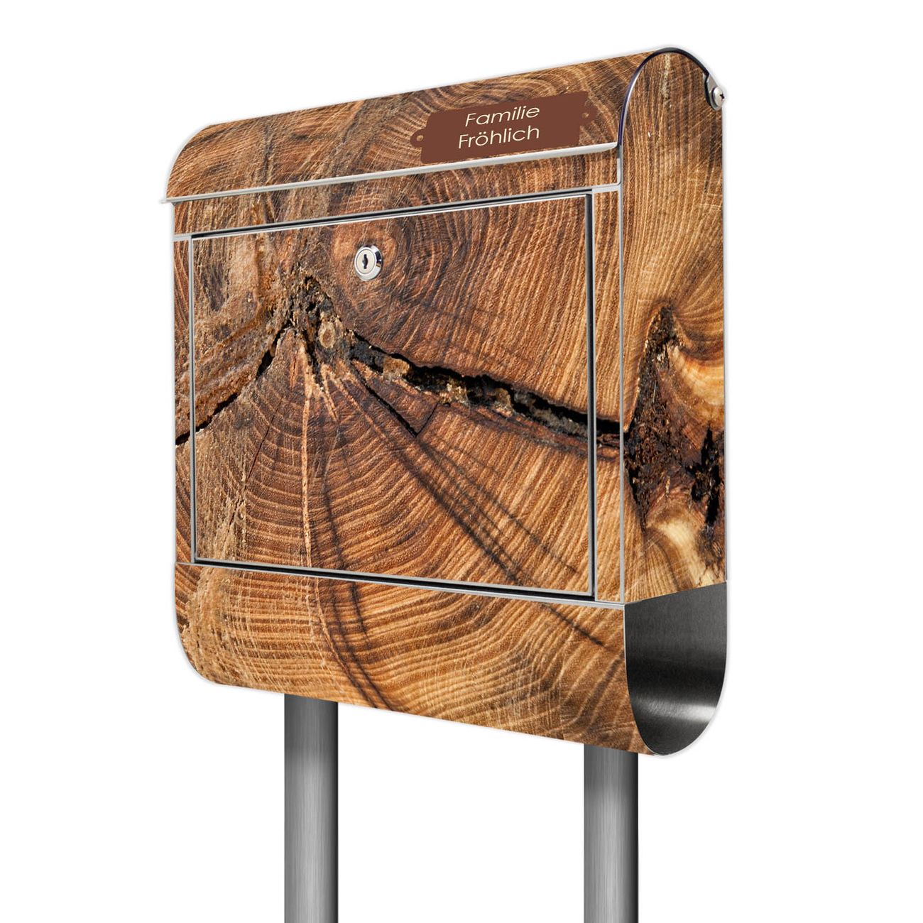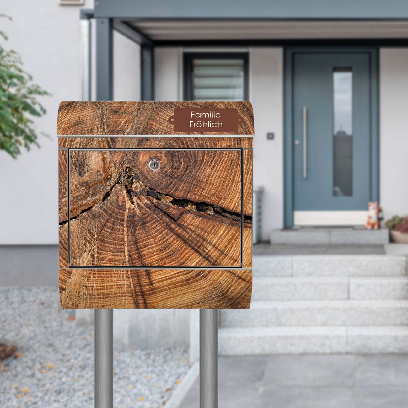 Der Motivstandbriefkasten hat ein sehr ansprechendes und ausgefallenes Design, damit entlocken Sie Ihren Nachbarn und dem Postboten ein Lächeln. Heben Sie Sich ab von der tristen grauen Masse, ohne auf Funktionalität zu verzichten. Der Briefkasten besteht aus hochwertigem 18/0 Edelstahl und die Wetter- und UV-resistenten Folie mit Jahresringe Motiv ist zusätzlich mit einem Schutzlaminat überzogen. Der Standbriefkasten wird mit Montagematerial und zwei Schlüsseln geliefert.