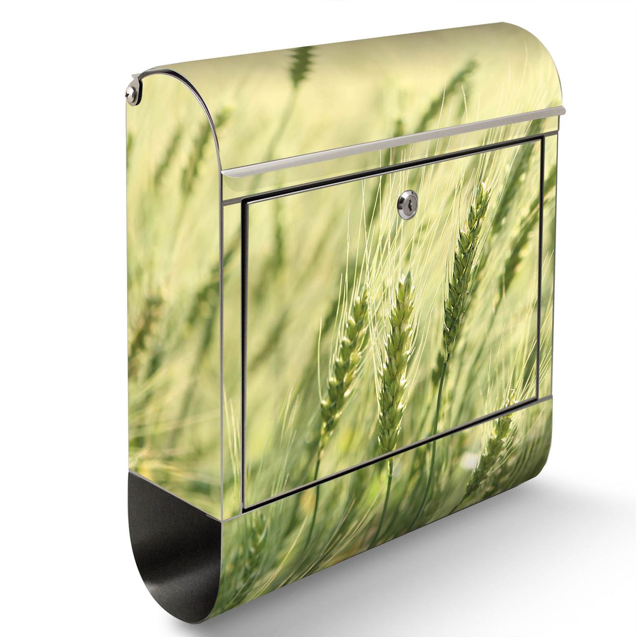 Der Motivstandbriefkasten hat ein sehr ansprechendes und ausgefallenes Design, damit entlocken Sie Ihren Nachbarn und dem Postboten ein Lächeln. Heben Sie Sich ab von der tristen grauen Masse, ohne auf Funktionalität zu verzichten. Der Briefkasten besteht aus hochwertigem 18/0 Edelstahl und die Wetter- und UV-resistenten Folie mit Junges Getreide Motiv ist zusätzlich mit einem Schutzlaminat überzogen. Der Standbriefkasten wird mit Montagematerial und zwei Schlüsseln geliefert.