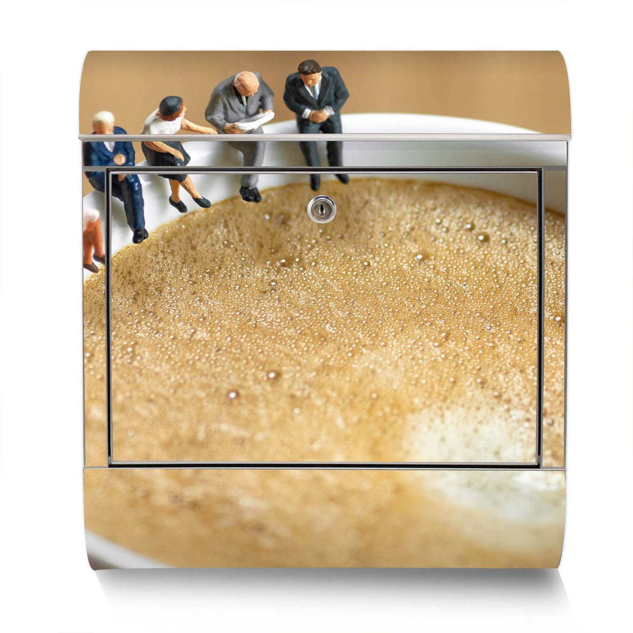 Der Motivstandbriefkasten hat ein sehr ansprechendes und ausgefallenes Design, damit entlocken Sie Ihren Nachbarn und dem Postboten ein Lächeln. Heben Sie Sich ab von der tristen grauen Masse, ohne auf Funktionalität zu verzichten. Der Briefkasten besteht aus hochwertigem 18/0 Edelstahl und die Wetter- und UV-resistenten Folie mit Kaffeepause Motiv ist zusätzlich mit einem Schutzlaminat überzogen. Der Standbriefkasten wird mit Montagematerial und zwei Schlüsseln geliefert.