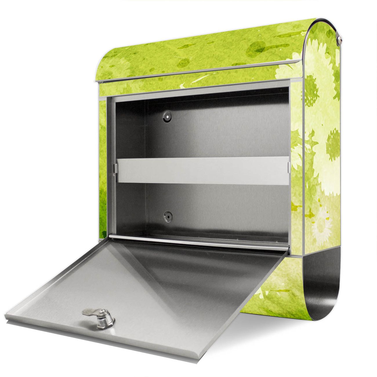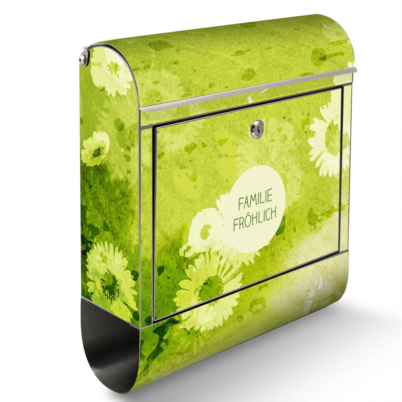 Der Motivstandbriefkasten hat ein sehr ansprechendes und ausgefallenes Design, damit entlocken Sie Ihren Nachbarn und dem Postboten ein Lächeln. Heben Sie Sich ab von der tristen grauen Masse, ohne auf Funktionalität zu verzichten. Der Briefkasten besteht aus hochwertigem 18/0 Edelstahl und die Wetter- und UV-resistenten Folie mit Kamille Grün Motiv ist zusätzlich mit einem Schutzlaminat überzogen. Der Standbriefkasten wird mit Montagematerial und zwei Schlüsseln geliefert.
