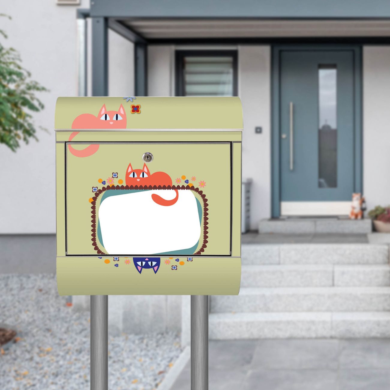 Standbriefkasten Edelstahl Karikatur Katzen