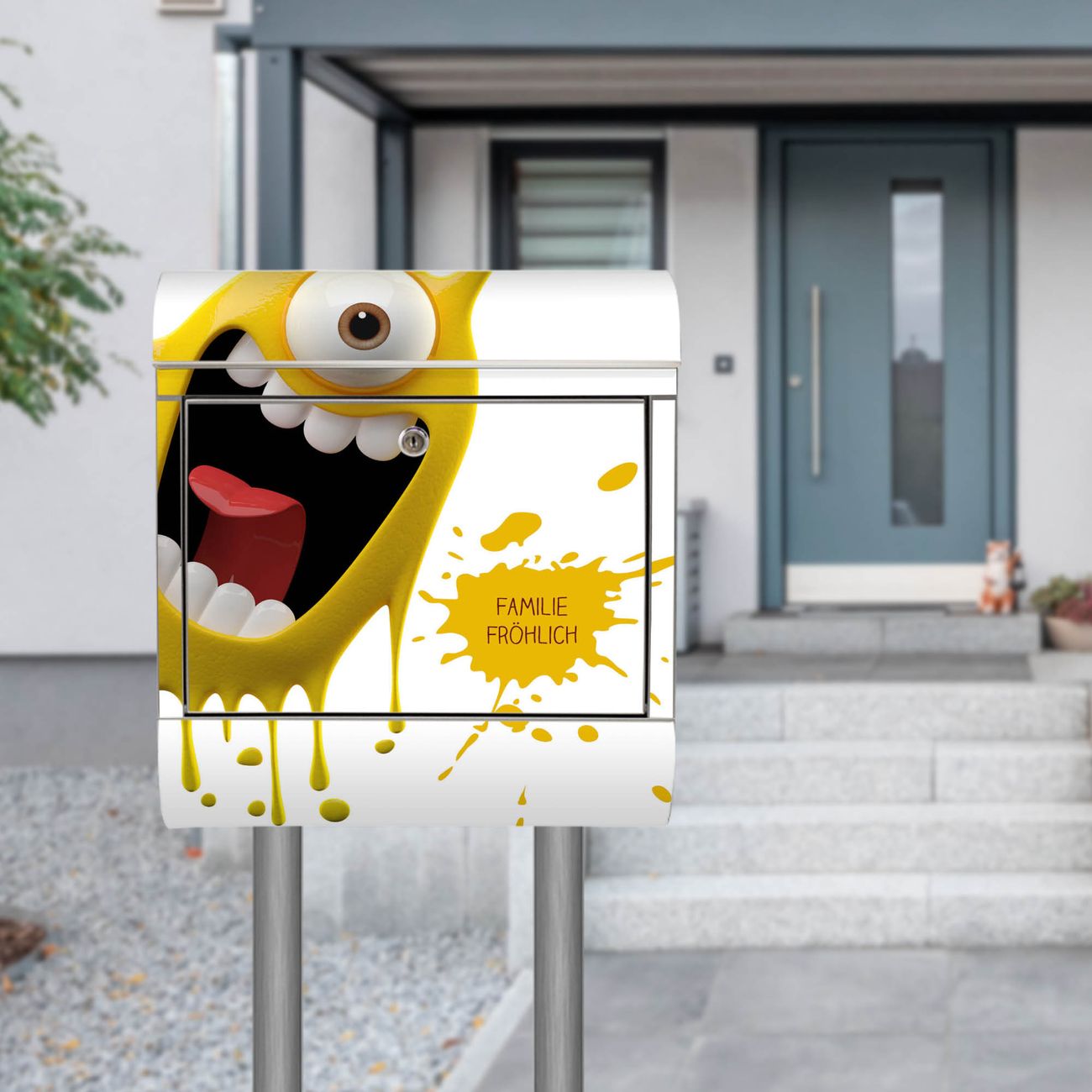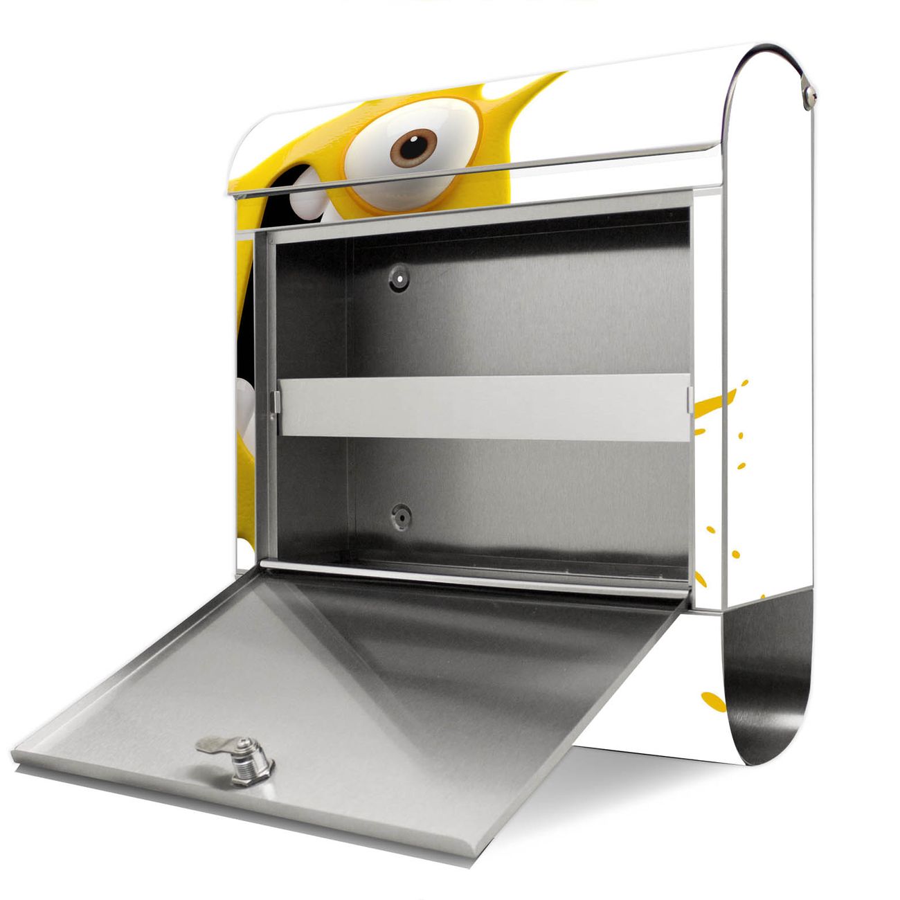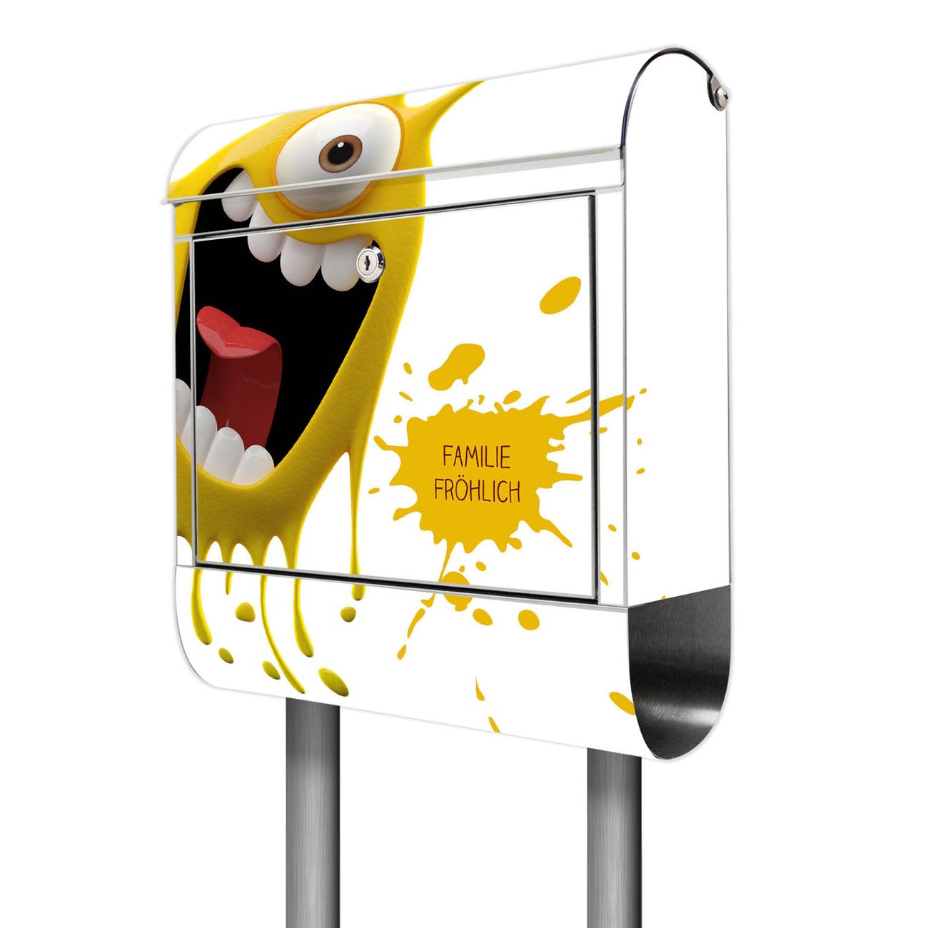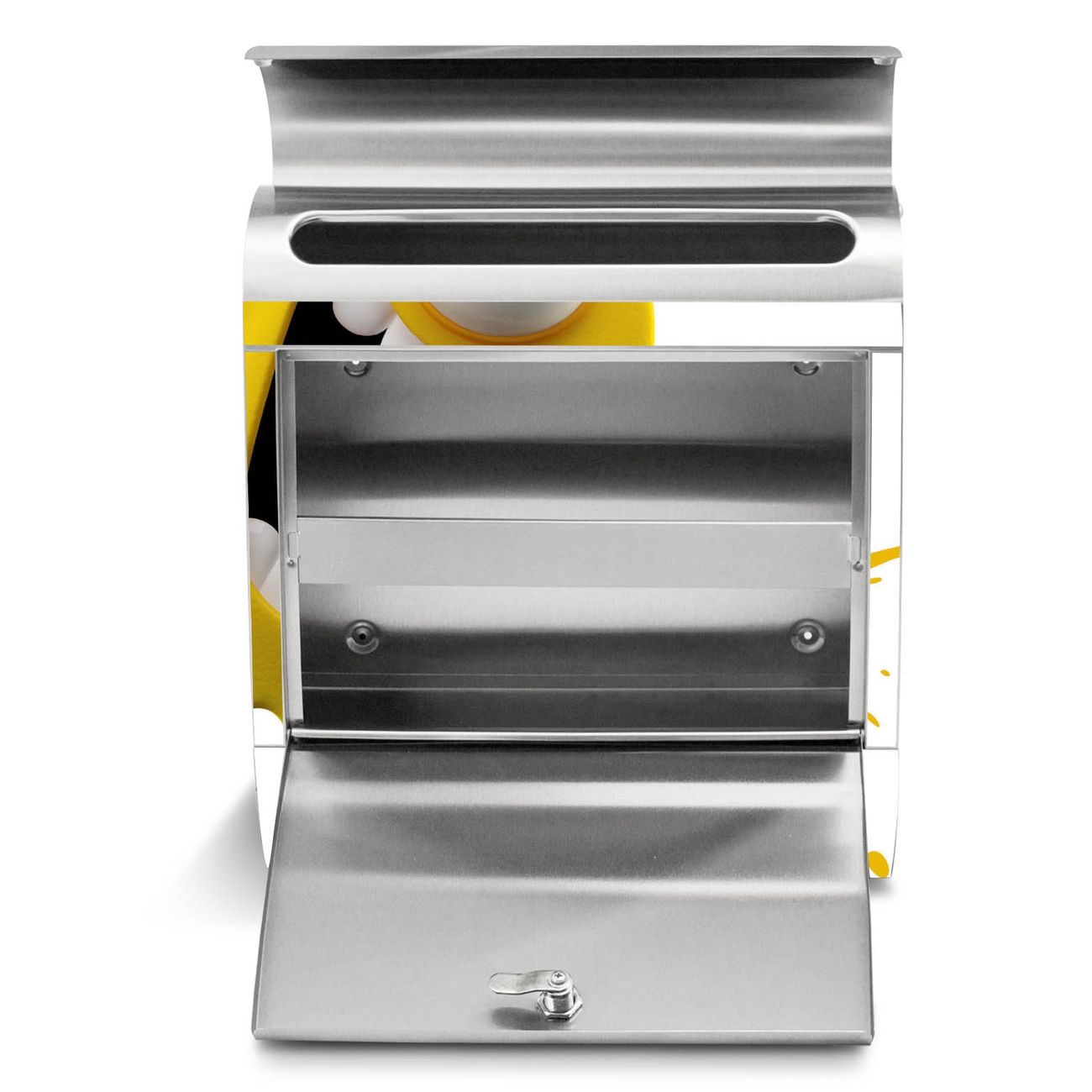 Der Motivstandbriefkasten hat ein sehr ansprechendes und ausgefallenes Design, damit entlocken Sie Ihren Nachbarn und dem Postboten ein Lächeln. Heben Sie Sich ab von der tristen grauen Masse, ohne auf Funktionalität zu verzichten. Der Briefkasten besteht aus hochwertigem 18/0 Edelstahl und die Wetter- und UV-resistenten Folie mit Karl Splash Motiv ist zusätzlich mit einem Schutzlaminat überzogen. Der Standbriefkasten wird mit Montagematerial und zwei Schlüsseln geliefert.