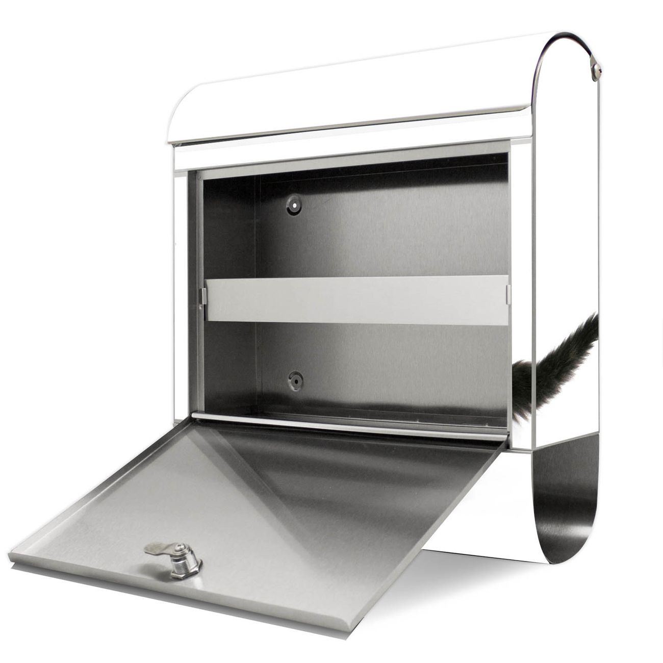Der banjado Edelstahl Standbriefkasten mit Motiv Katze Und Fisch bietet Ihnen mit seinem Fassungsvermögen genügend Platz auch für große A4 Sendungen. Das integrierte Zeitungsfach eignet sich hervorragend, um unkompliziert die Tageszeitung zu fassen.