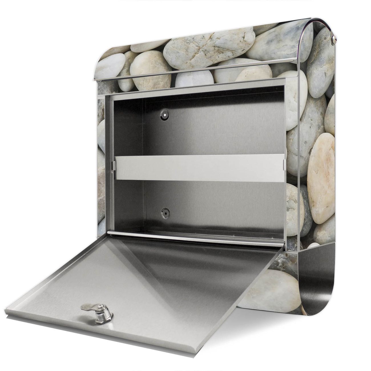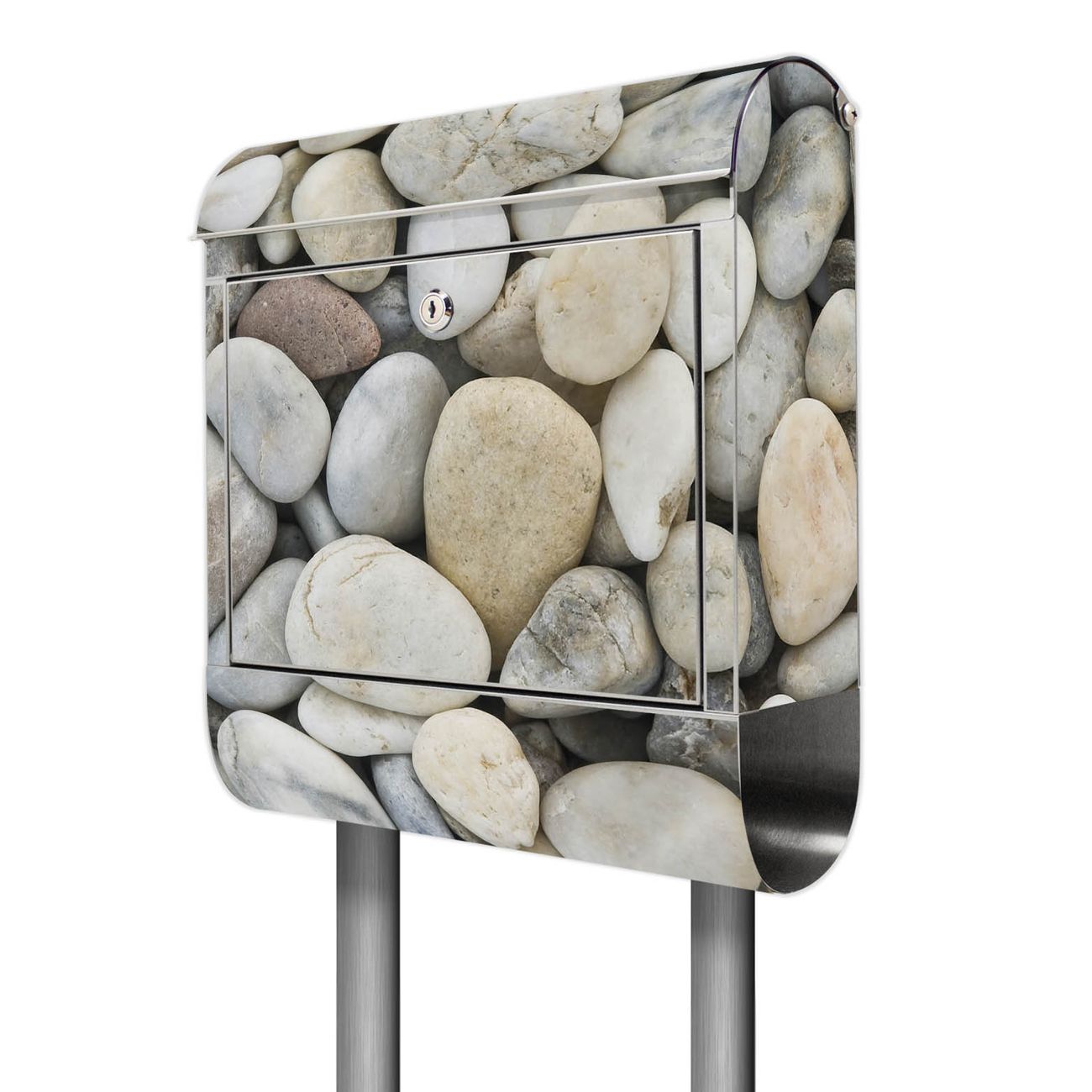 Der Motivstandbriefkasten hat ein sehr ansprechendes und ausgefallenes Design, damit entlocken Sie Ihren Nachbarn und dem Postboten ein Lächeln. Heben Sie Sich ab von der tristen grauen Masse, ohne auf Funktionalität zu verzichten. Der Briefkasten besteht aus hochwertigem 18/0 Edelstahl und die Wetter- und UV-resistenten Folie mit Kieselsteine Motiv ist zusätzlich mit einem Schutzlaminat überzogen. Der Standbriefkasten wird mit Montagematerial und zwei Schlüsseln geliefert.