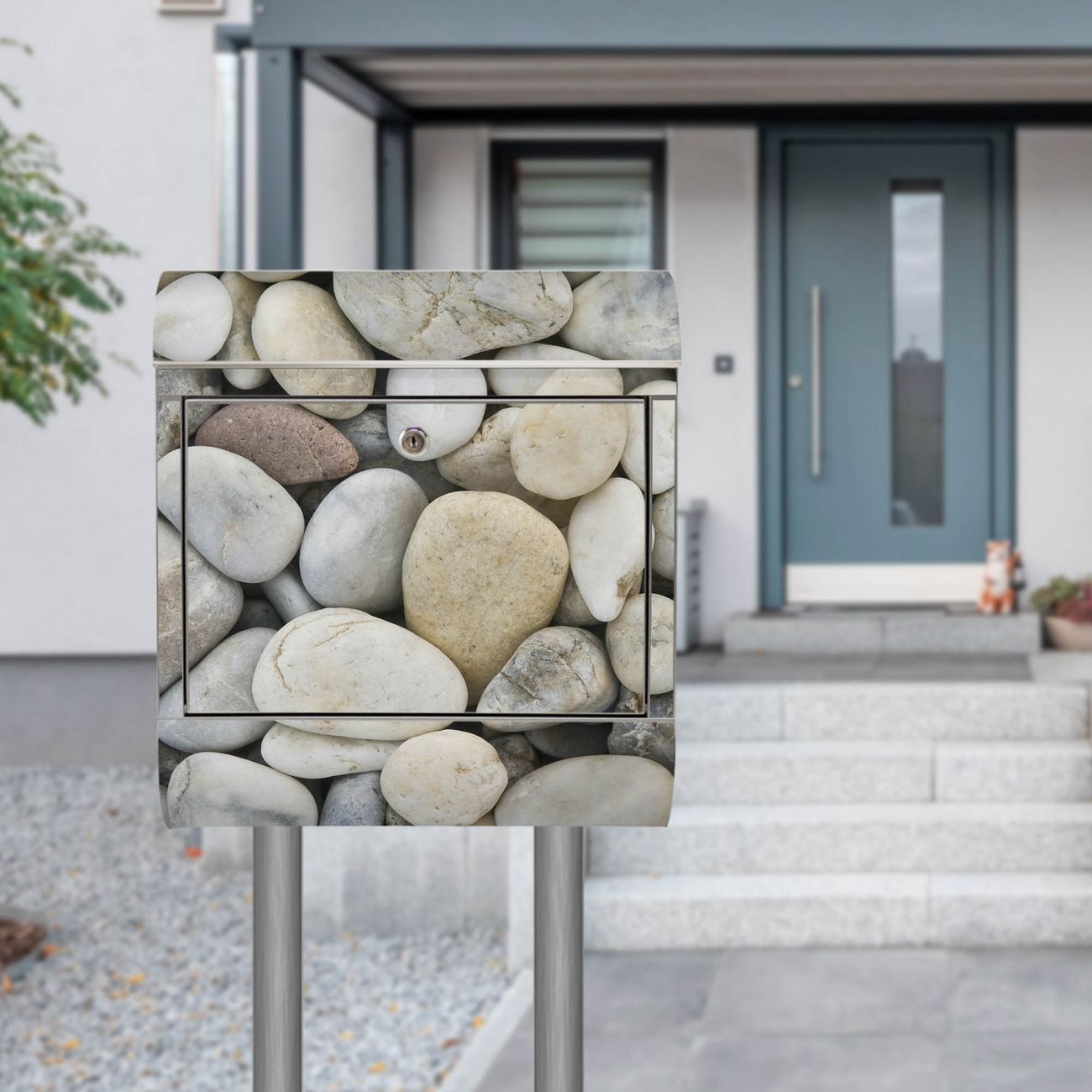 Der banjado Edelstahl Standbriefkasten mit Motiv Kieselsteine bietet Ihnen mit seinem Fassungsvermögen genügend Platz auch für große A4 Sendungen. Das integrierte Zeitungsfach eignet sich hervorragend, um unkompliziert die Tageszeitung zu fassen.