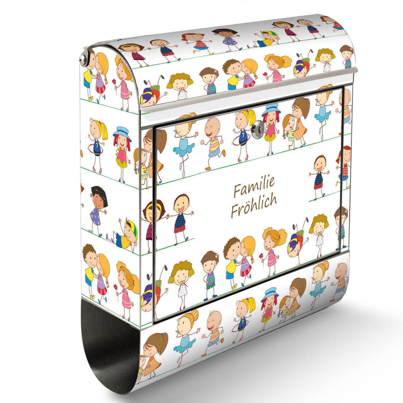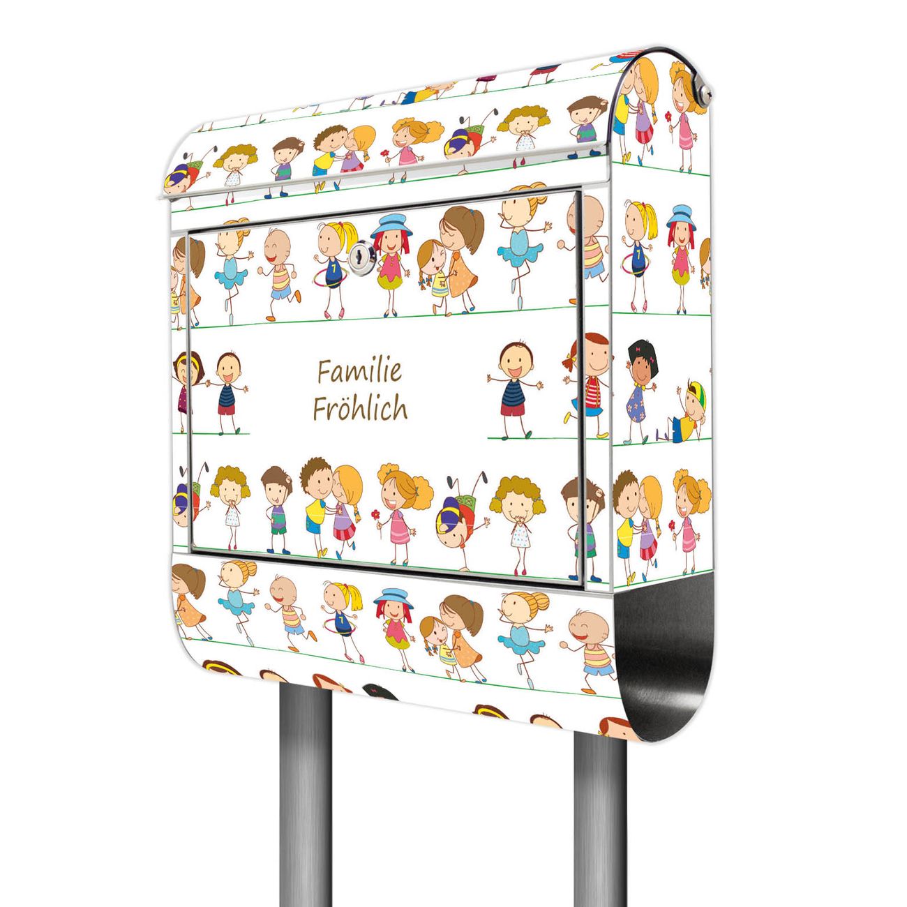 Der Motivstandbriefkasten hat ein sehr ansprechendes und ausgefallenes Design, damit entlocken Sie Ihren Nachbarn und dem Postboten ein Lächeln. Heben Sie Sich ab von der tristen grauen Masse, ohne auf Funktionalität zu verzichten. Der Briefkasten besteht aus hochwertigem 18/0 Edelstahl und die Wetter- und UV-resistenten Folie mit Kinder Motiv ist zusätzlich mit einem Schutzlaminat überzogen. Der Standbriefkasten wird mit Montagematerial und zwei Schlüsseln geliefert.