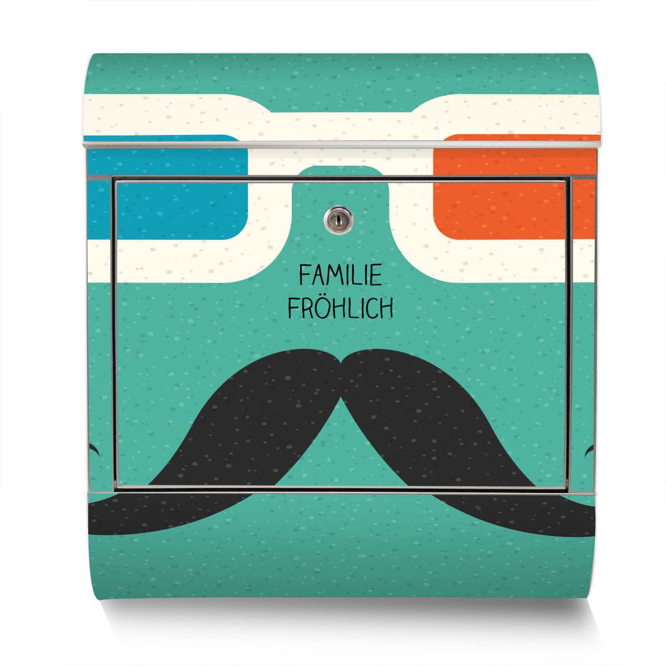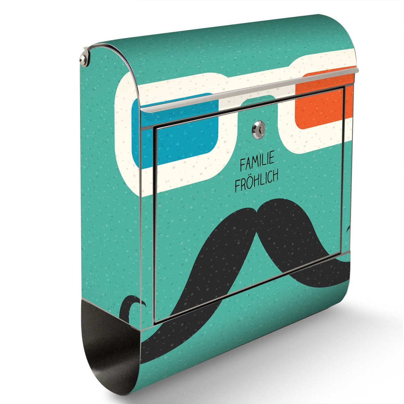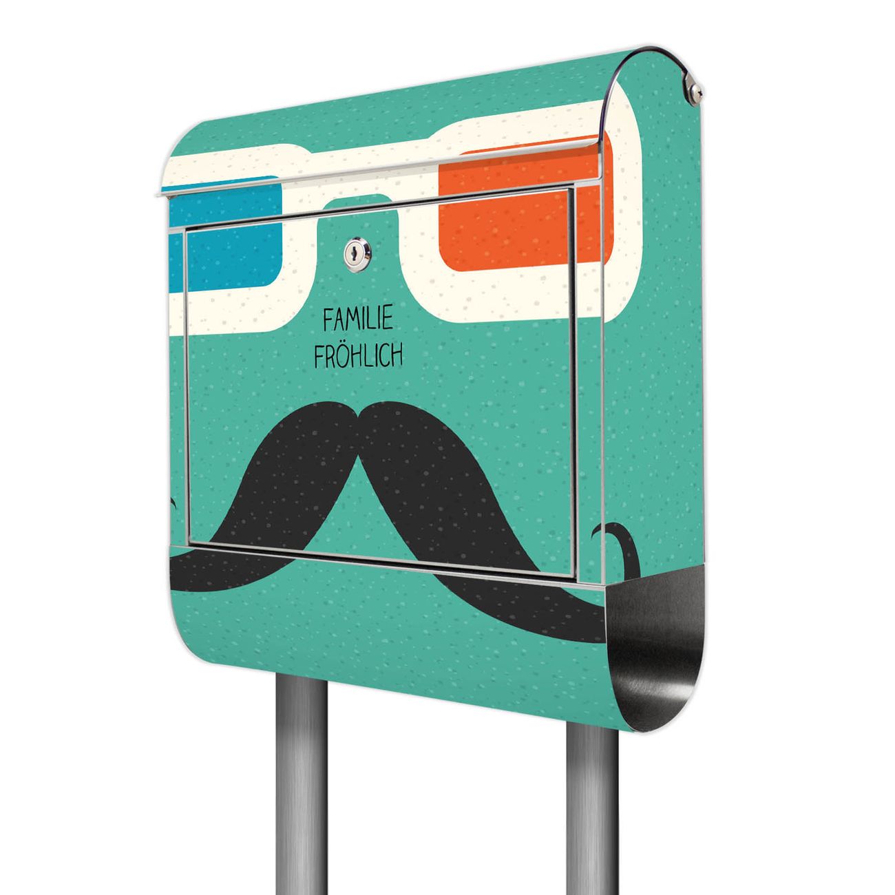 Der Motivstandbriefkasten hat ein sehr ansprechendes und ausgefallenes Design, damit entlocken Sie Ihren Nachbarn und dem Postboten ein Lächeln. Heben Sie Sich ab von der tristen grauen Masse, ohne auf Funktionalität zu verzichten. Der Briefkasten besteht aus hochwertigem 18/0 Edelstahl und die Wetter- und UV-resistenten Folie mit Kinobrille Motiv ist zusätzlich mit einem Schutzlaminat überzogen. Der Standbriefkasten wird mit Montagematerial und zwei Schlüsseln geliefert.
