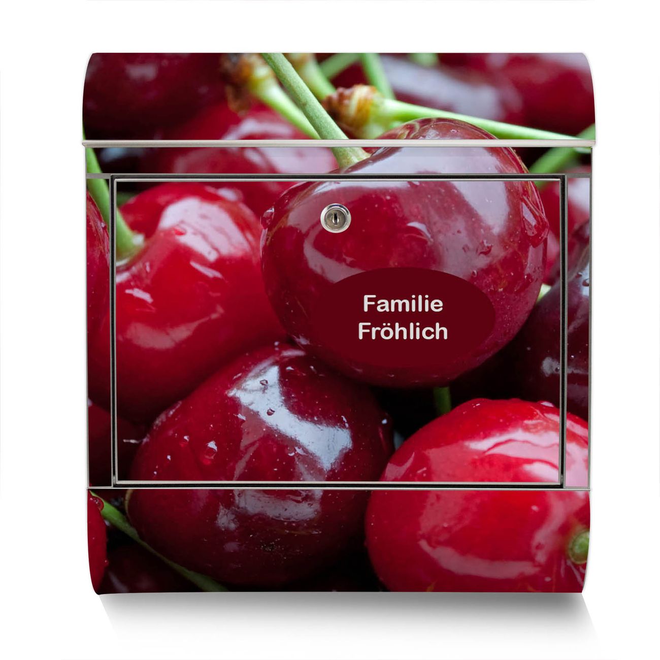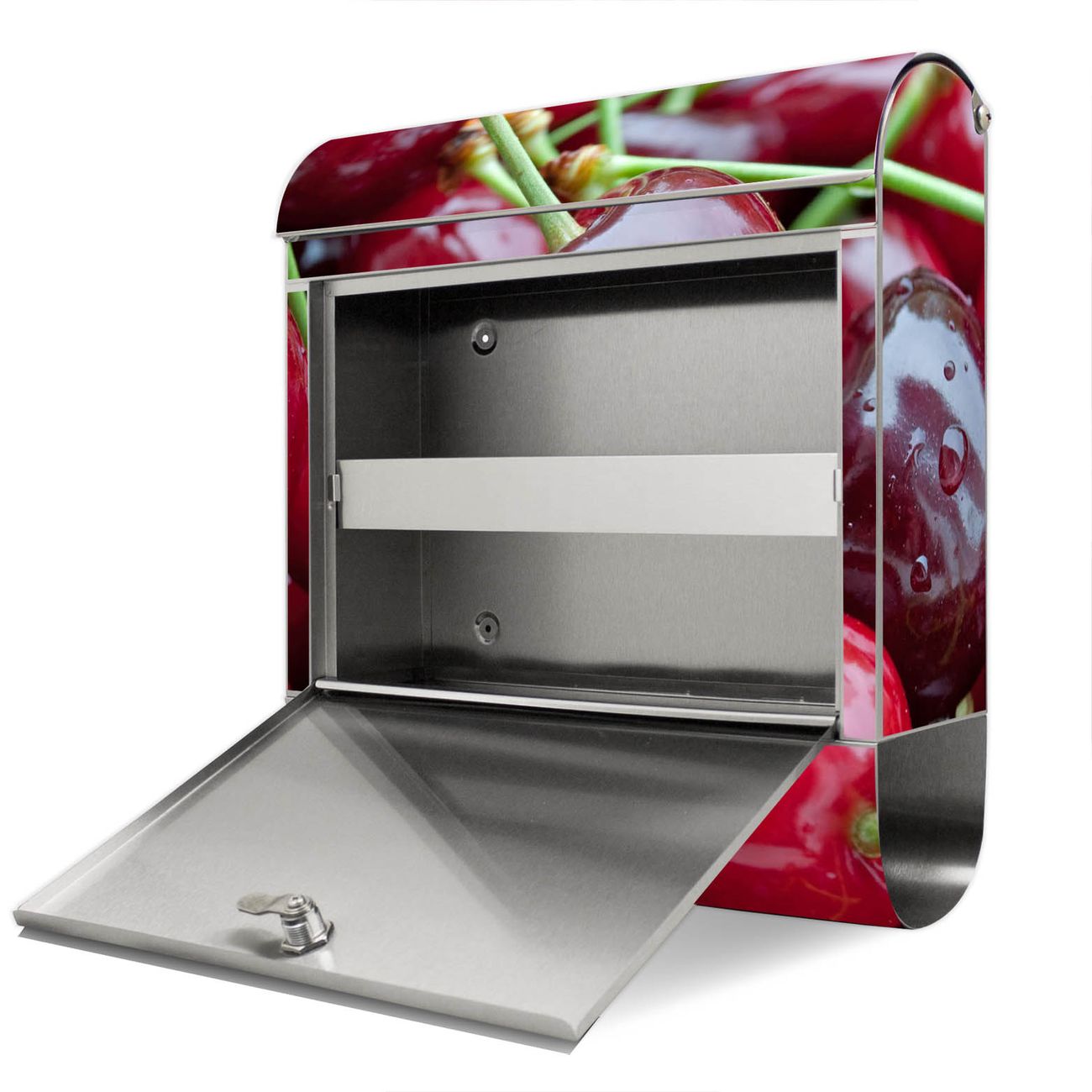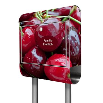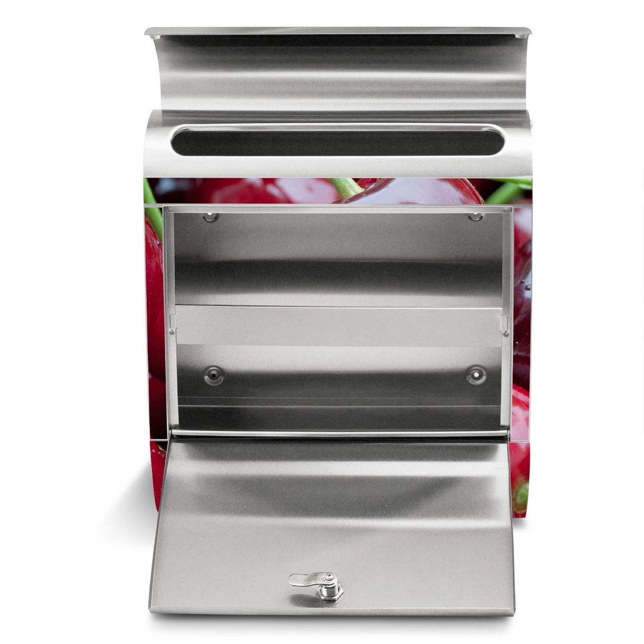 Der banjado Edelstahl Standbriefkasten mit Motiv Kirschen und eigenem Wunschtext bietet Ihnen mit seinem Fassungsvermögen genügend Platz auch für große A4 Sendungen. Das integrierte Zeitungsfach eignet sich hervorragend, um unkompliziert die Tageszeitung zu fassen.