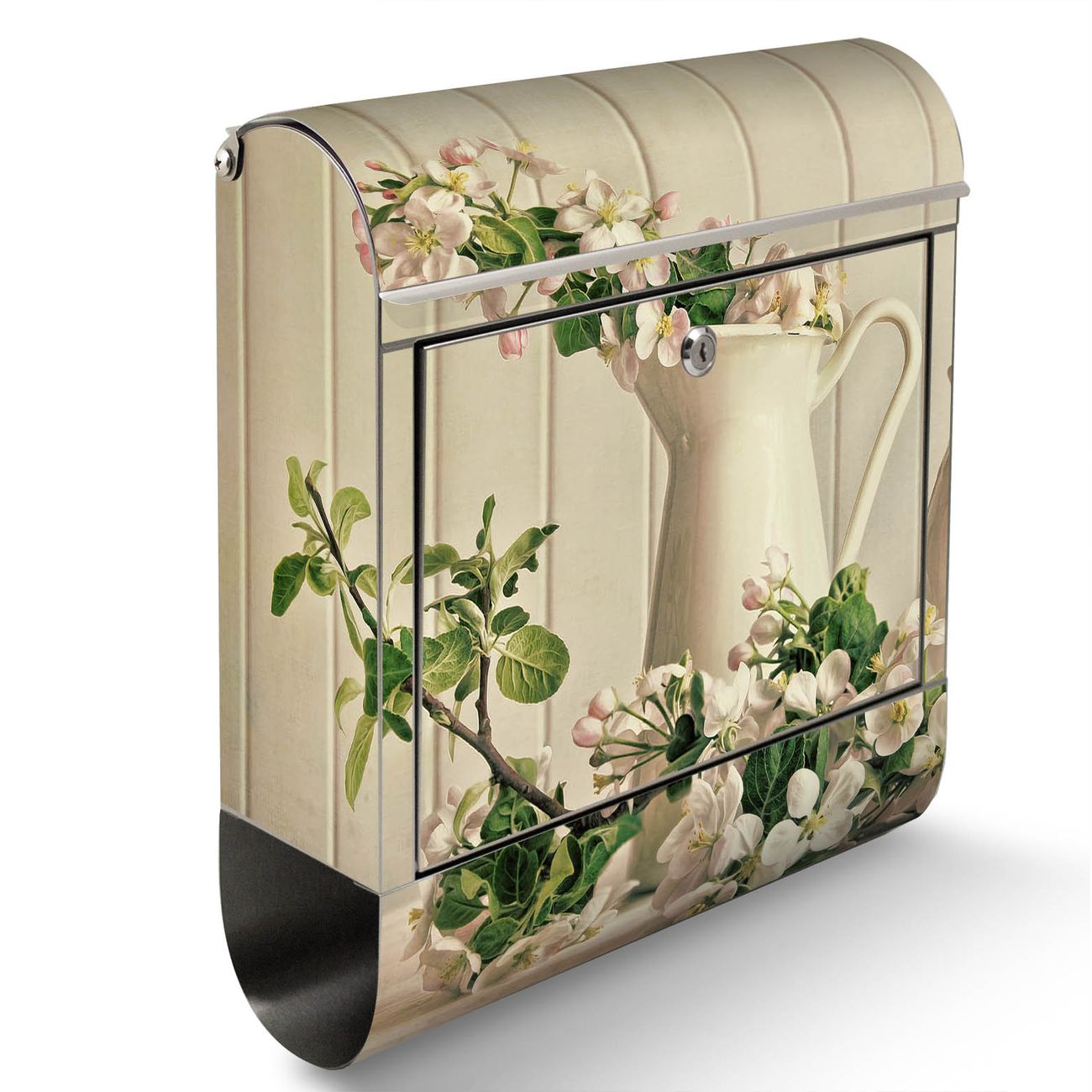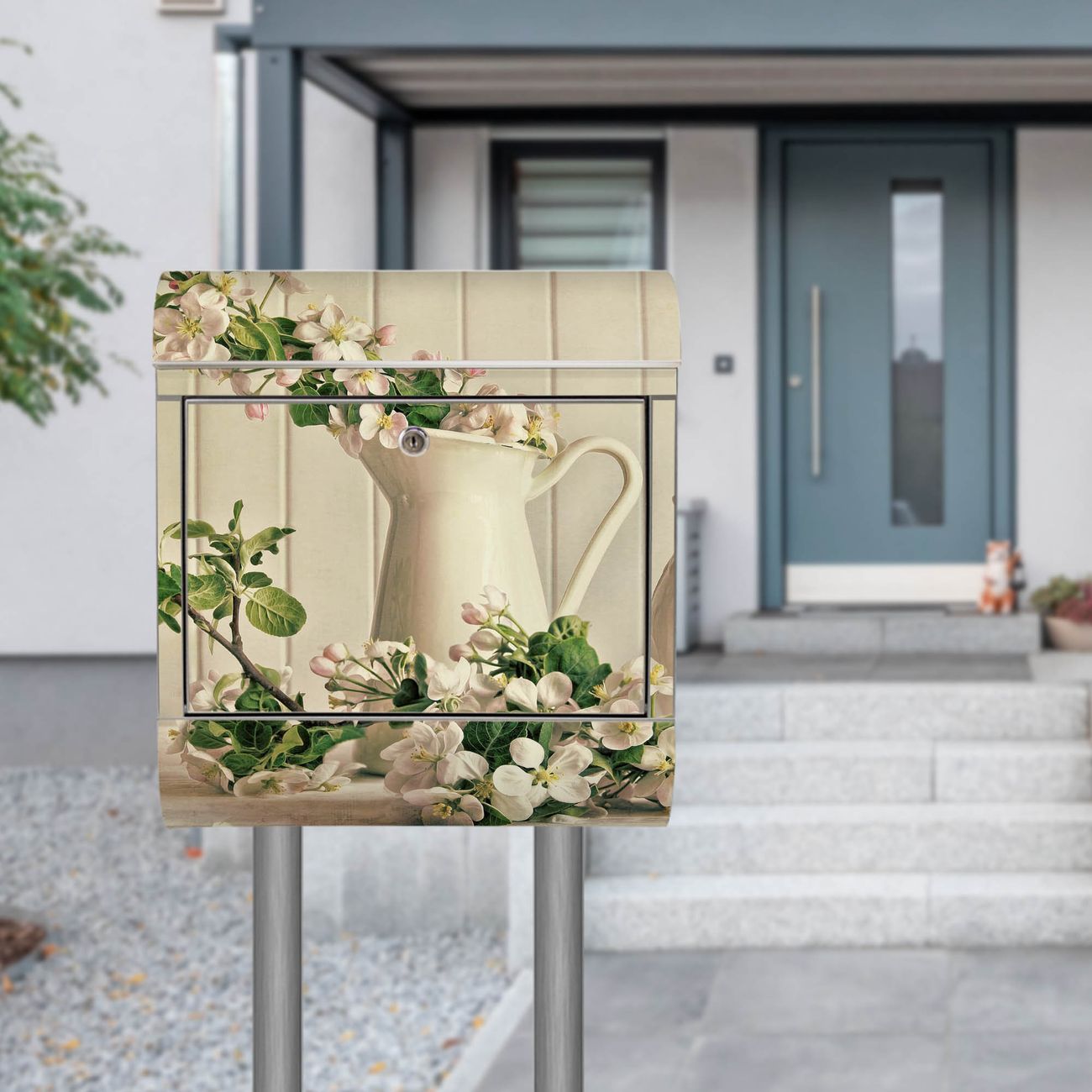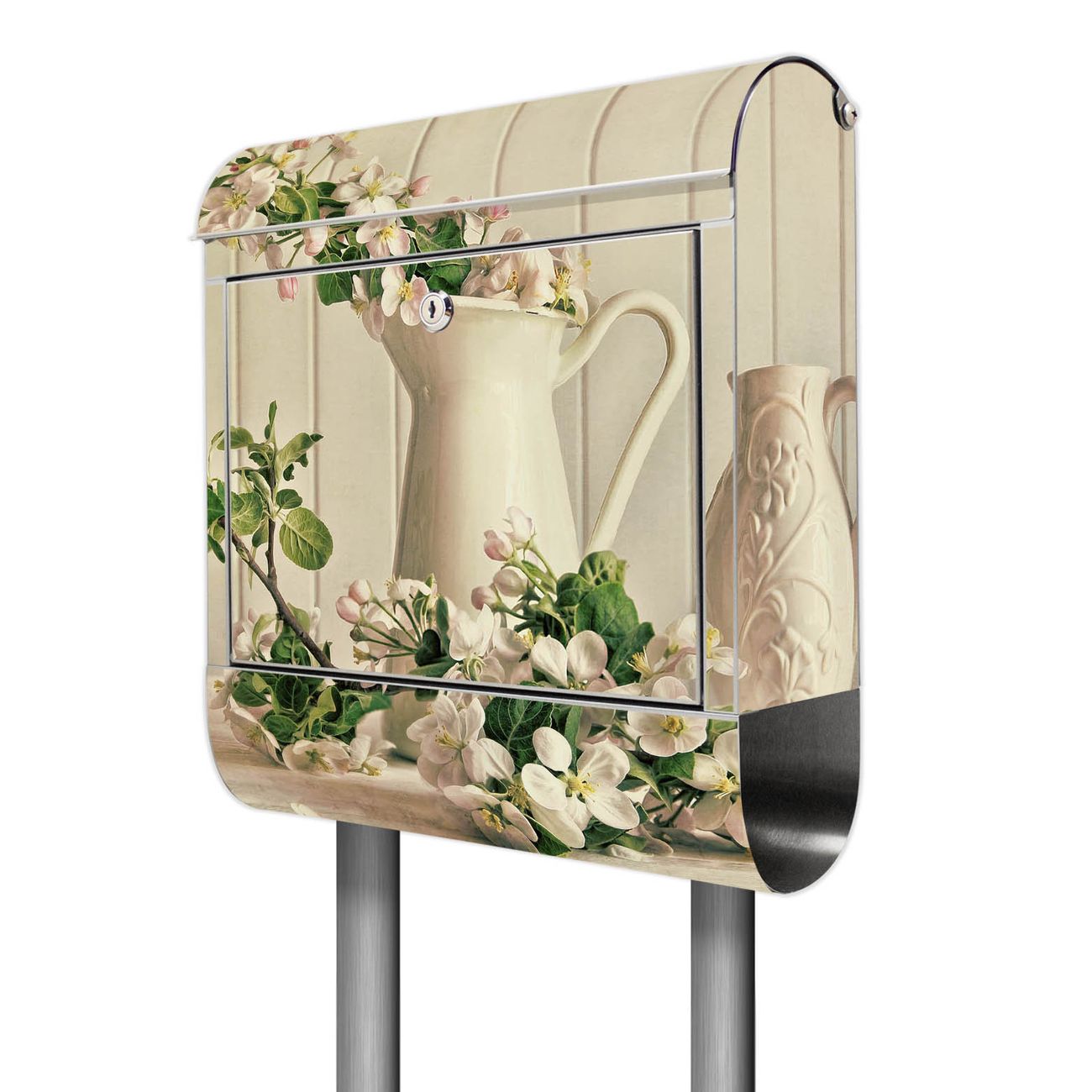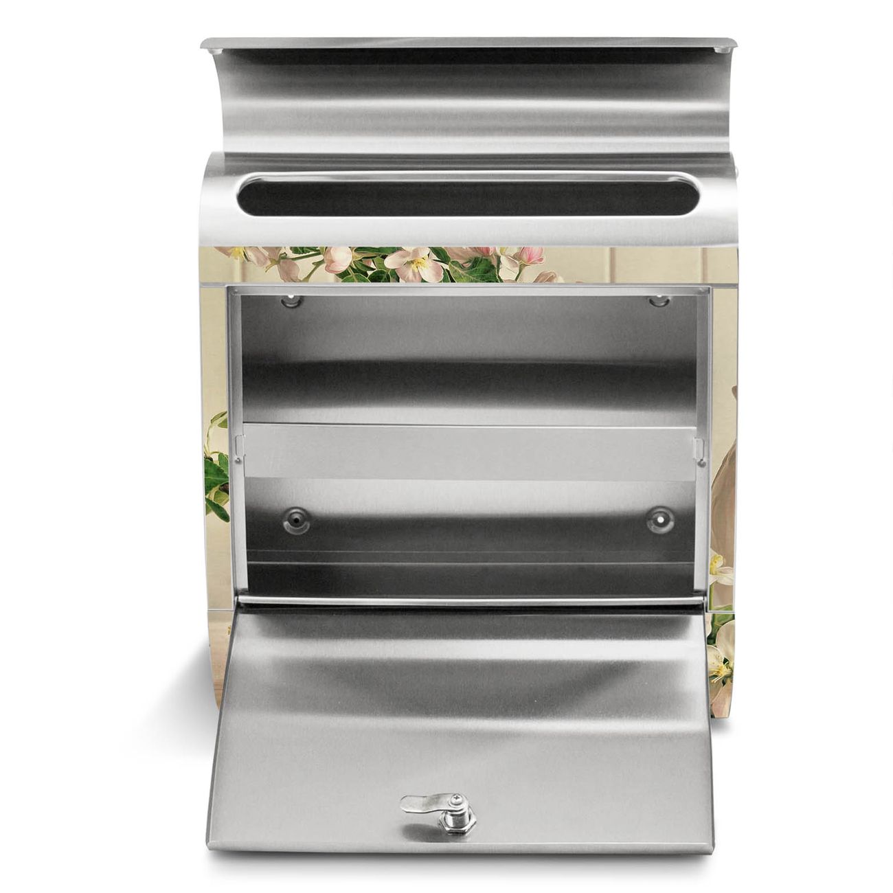 Der banjado Edelstahl Standbriefkasten mit Motiv Kirschzweige bietet Ihnen mit seinem Fassungsvermögen genügend Platz auch für große A4 Sendungen. Das integrierte Zeitungsfach eignet sich hervorragend, um unkompliziert die Tageszeitung zu fassen.