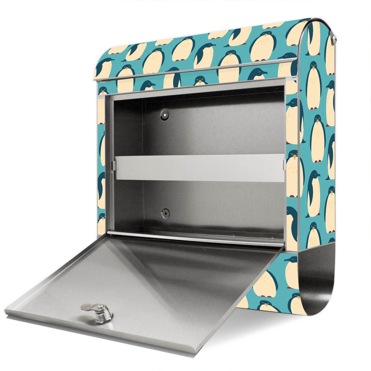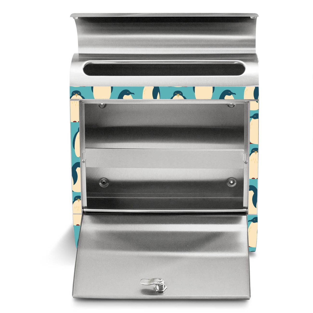 Der banjado Edelstahl Standbriefkasten mit Motiv Königspinguine bietet Ihnen mit seinem Fassungsvermögen genügend Platz auch für große A4 Sendungen. Das integrierte Zeitungsfach eignet sich hervorragend, um unkompliziert die Tageszeitung zu fassen.