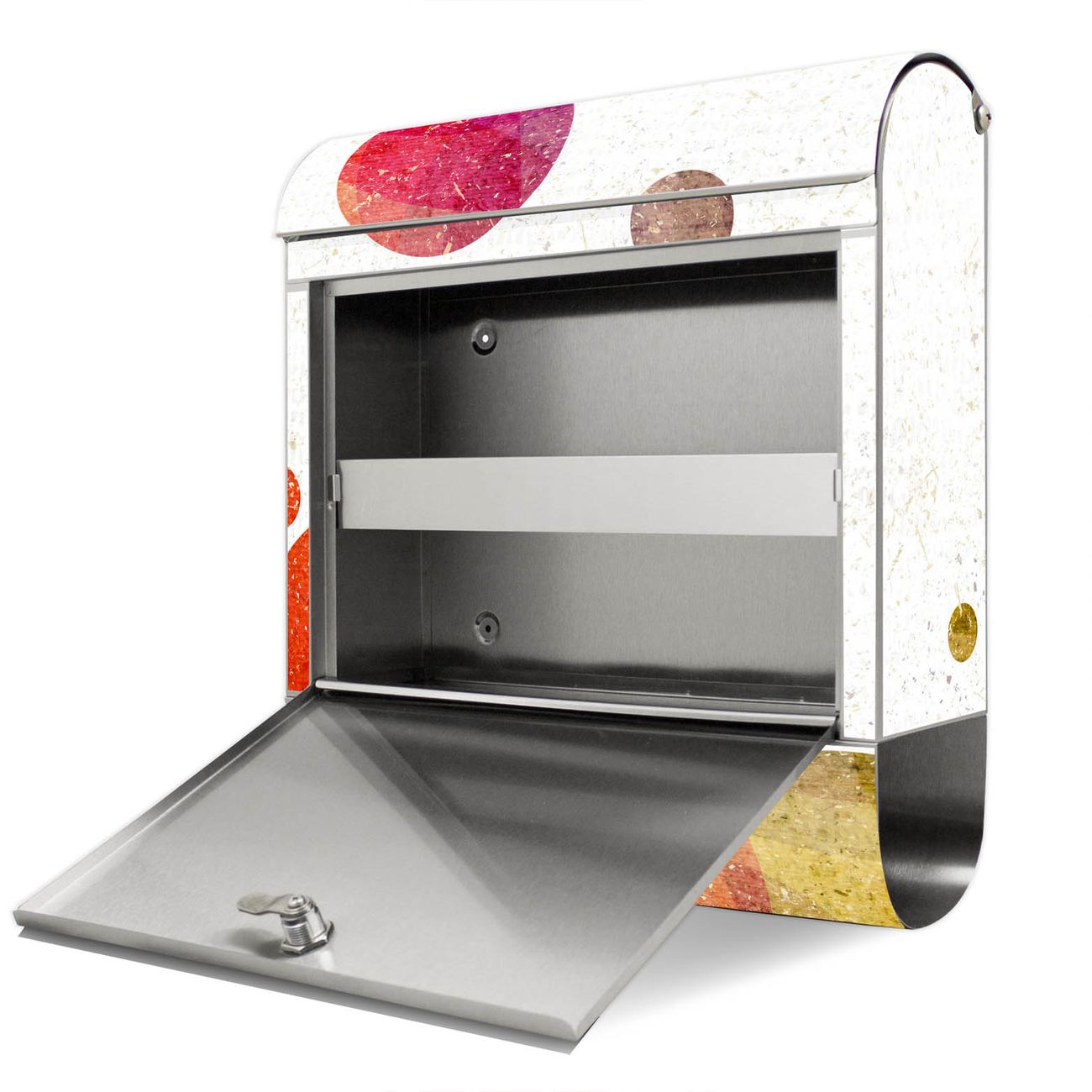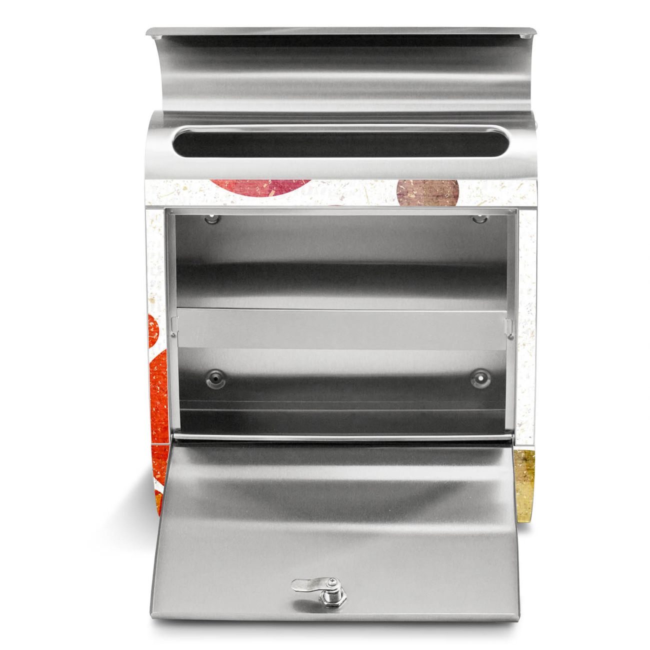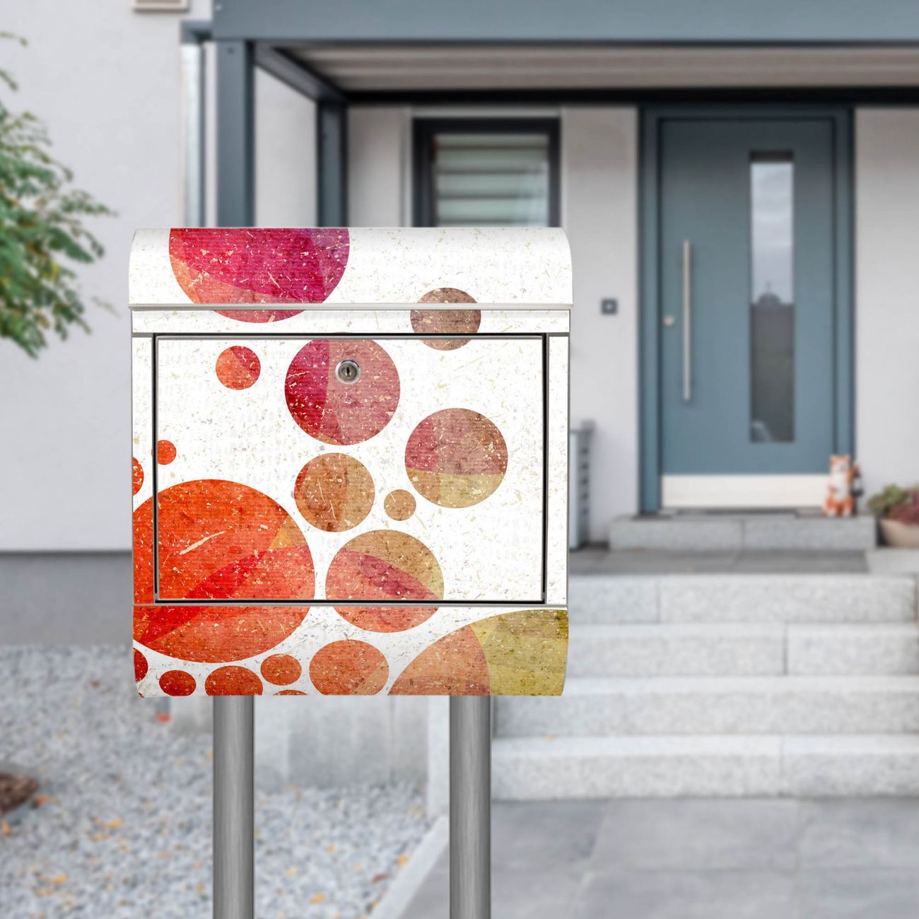 Der Motivstandbriefkasten hat ein sehr ansprechendes und ausgefallenes Design, damit entlocken Sie Ihren Nachbarn und dem Postboten ein Lächeln. Heben Sie Sich ab von der tristen grauen Masse, ohne auf Funktionalität zu verzichten. Der Briefkasten besteht aus hochwertigem 18/0 Edelstahl und die Wetter- und UV-resistenten Folie mit Kreise Motiv ist zusätzlich mit einem Schutzlaminat überzogen. Der Standbriefkasten wird mit Montagematerial und zwei Schlüsseln geliefert.