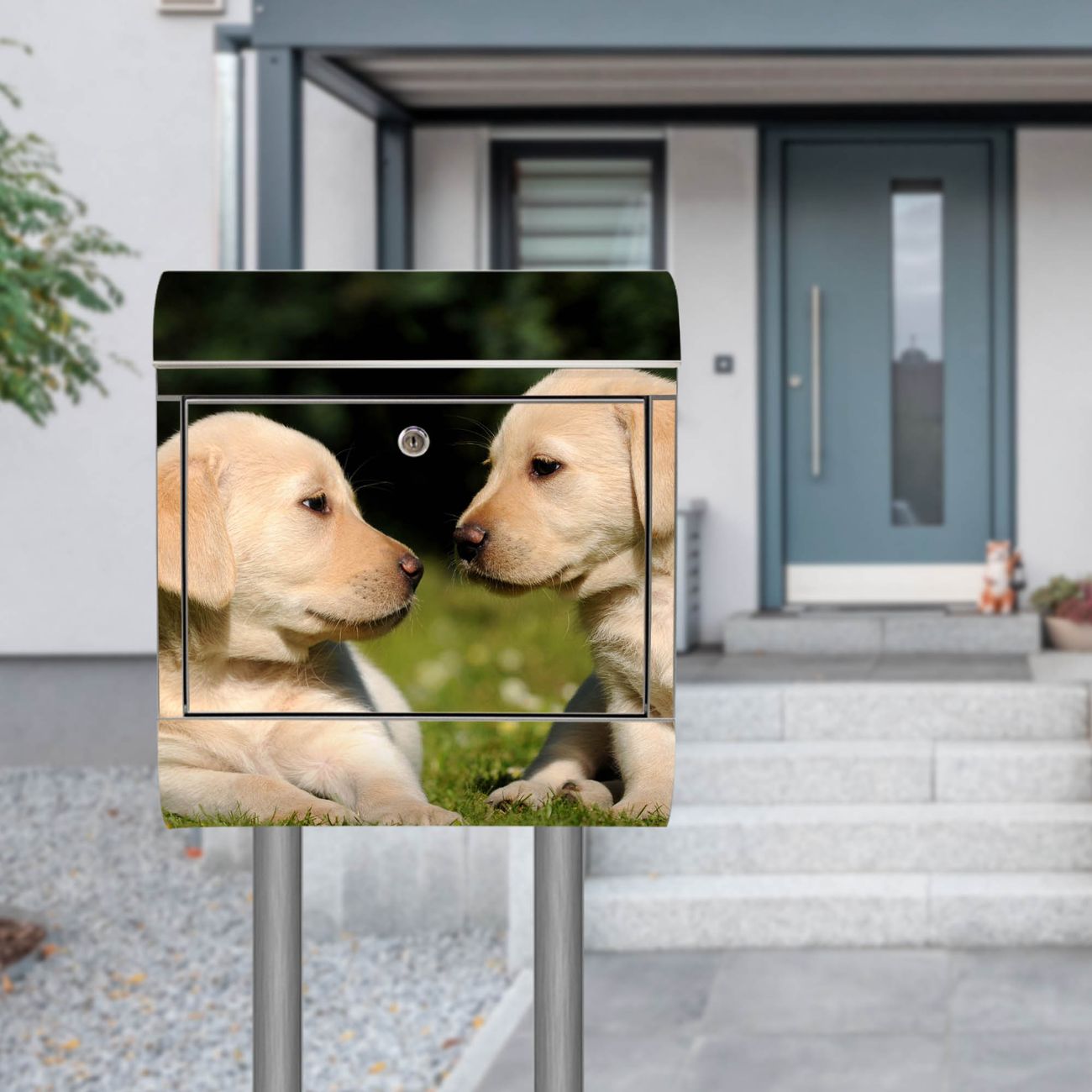 Der Motivstandbriefkasten hat ein sehr ansprechendes und ausgefallenes Design, damit entlocken Sie Ihren Nachbarn und dem Postboten ein Lächeln. Heben Sie Sich ab von der tristen grauen Masse, ohne auf Funktionalität zu verzichten. Der Briefkasten besteht aus hochwertigem 18/0 Edelstahl und die Wetter- und UV-resistenten Folie mit Labrador Motiv ist zusätzlich mit einem Schutzlaminat überzogen. Der Standbriefkasten wird mit Montagematerial und zwei Schlüsseln geliefert.
