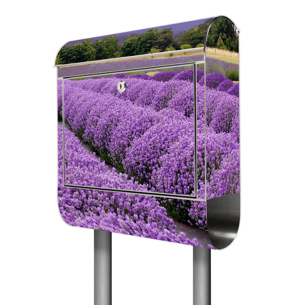 Der Motivstandbriefkasten hat ein sehr ansprechendes und ausgefallenes Design, damit entlocken Sie Ihren Nachbarn und dem Postboten ein Lächeln. Heben Sie Sich ab von der tristen grauen Masse, ohne auf Funktionalität zu verzichten. Der Briefkasten besteht aus hochwertigem 18/0 Edelstahl und die Wetter- und UV-resistenten Folie mit Lavendel 1 Motiv ist zusätzlich mit einem Schutzlaminat überzogen. Der Standbriefkasten wird mit Montagematerial und zwei Schlüsseln geliefert.
