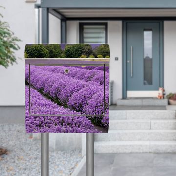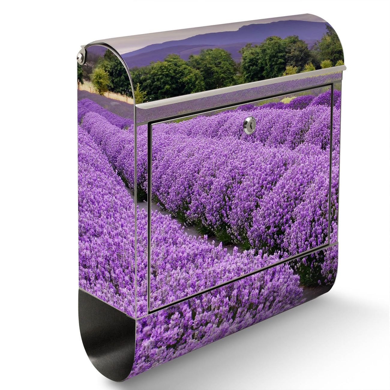 Der banjado Edelstahl Standbriefkasten mit Motiv Lavendel 1 bietet Ihnen mit seinem Fassungsvermögen genügend Platz auch für große A4 Sendungen. Das integrierte Zeitungsfach eignet sich hervorragend, um unkompliziert die Tageszeitung zu fassen.
