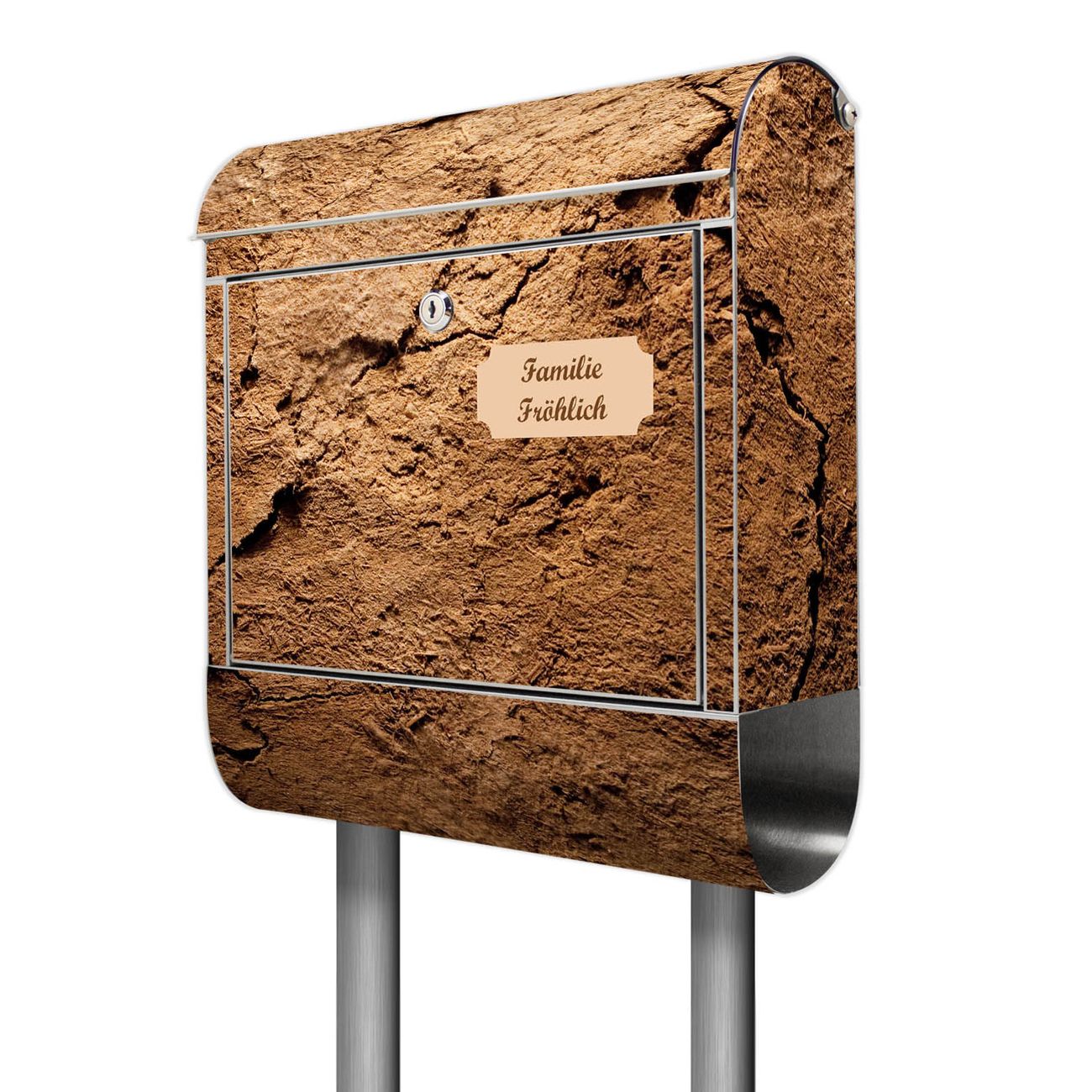 Der Motivstandbriefkasten hat ein sehr ansprechendes und ausgefallenes Design, damit entlocken Sie Ihren Nachbarn und dem Postboten ein Lächeln. Heben Sie Sich ab von der tristen grauen Masse, ohne auf Funktionalität zu verzichten. Der Briefkasten besteht aus hochwertigem 18/0 Edelstahl und die Wetter- und UV-resistenten Folie mit Lehmboden Motiv ist zusätzlich mit einem Schutzlaminat überzogen. Der Standbriefkasten wird mit Montagematerial und zwei Schlüsseln geliefert.