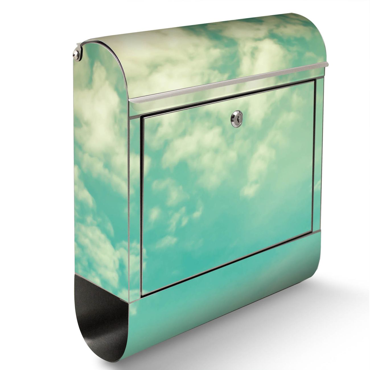 Der Motivstandbriefkasten hat ein sehr ansprechendes und ausgefallenes Design, damit entlocken Sie Ihren Nachbarn und dem Postboten ein Lächeln. Heben Sie Sich ab von der tristen grauen Masse, ohne auf Funktionalität zu verzichten. Der Briefkasten besteht aus hochwertigem 18/0 Edelstahl und die Wetter- und UV-resistenten Folie mit Leicht Bewölkt Motiv ist zusätzlich mit einem Schutzlaminat überzogen. Der Standbriefkasten wird mit Montagematerial und zwei Schlüsseln geliefert.