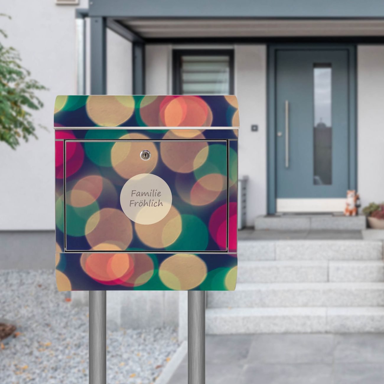Standbriefkasten Edelstahl Lichtpunkte Weiß Grün Rot